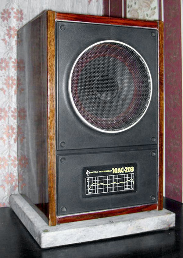 Акустичесие системы *10АС-203* и *10АС-403* с начала 1977 года выпускал соответственно Брянский электромеханический завод и Смоленский завод *Измеритель*. АС - **10АС-203** по конструкции схожа с 10АС-403**, отличие в габаритах, массе и оформлении. Номинальная мощность 10 , максимальная 15 Вт. Диапазон 63...18000 Гц. Чувствительность 88 дБ. В АС установлен широкополосный динамик 10ГД-36/10ГД-36К. Сопротивление 4 Ом. Габариты АС 10АС-203 420х300х270 мм. Вес 8,5 кг.