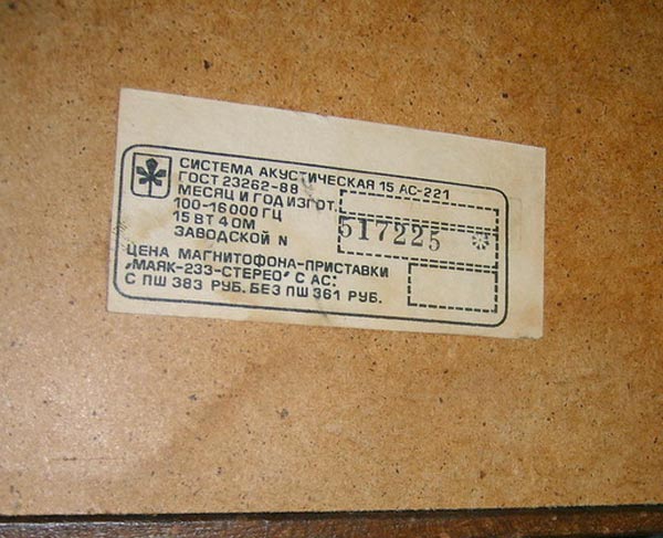 Акустическая система *15АС-221* выпускалась с 1987 года Киевским заводом *Маяк*. АС выпускалась под новым наименованием по новому ГОСТу и абсолютно аналогична модели *10АС-318* выпускаемой с 1985 года. АС входили в комплект магнитофона *Маяк М-233С*. Технические характеристики: Широкополосная АС закрытого типа. Диапазон воспроизводимых частот: 100...16000 Гц. Неравномерность АЧХ: 14 дБ. Чувствительность: 90 дБ. Сопротивление: 4 Ом. Номинальная мощность: 10 Вт. Долговременная мощность: 15 Вт. Кратковременная мощность: 20 Вт. Используемая головка: 10 ГДШ-1-4. Габариты АС 430х270х230 мм. Вес 7,5 кг.