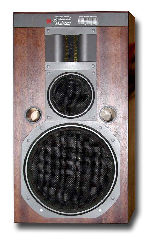 Трёхполосная акустическая система *Электроника 25АС-033* с 1986 года выпускал Ленинградский завод *Магнетон*. Бытовая АС с фазоинвертором **Электроника **25АС-033** предназначена для высококачественного воспроизведения музыкальных и речевых программ в стационарных условиях. Рекомендуемая выходная мощность применяемого усилителя 10...50 Вт. Предпочтительный вид установки для АС напольный. Диапазон эффективно воспроизводимых частот 25...31500 Гц. Гармонические искажения во всей полосе рабочих частот 1...2 %. Кратковременная допустимая мощность 75 Вт. Пиковая мощность 100 Вт. Габариты АС - 320х610325 мм. Масса 21 кг.