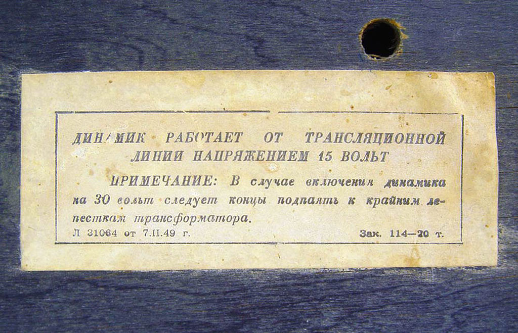 Абонентский громкоговоритель "339" выпускался с 1949 года Московским заводом № 339. Рассчитан для работы в радиолинии на 15 или 30 вольт.