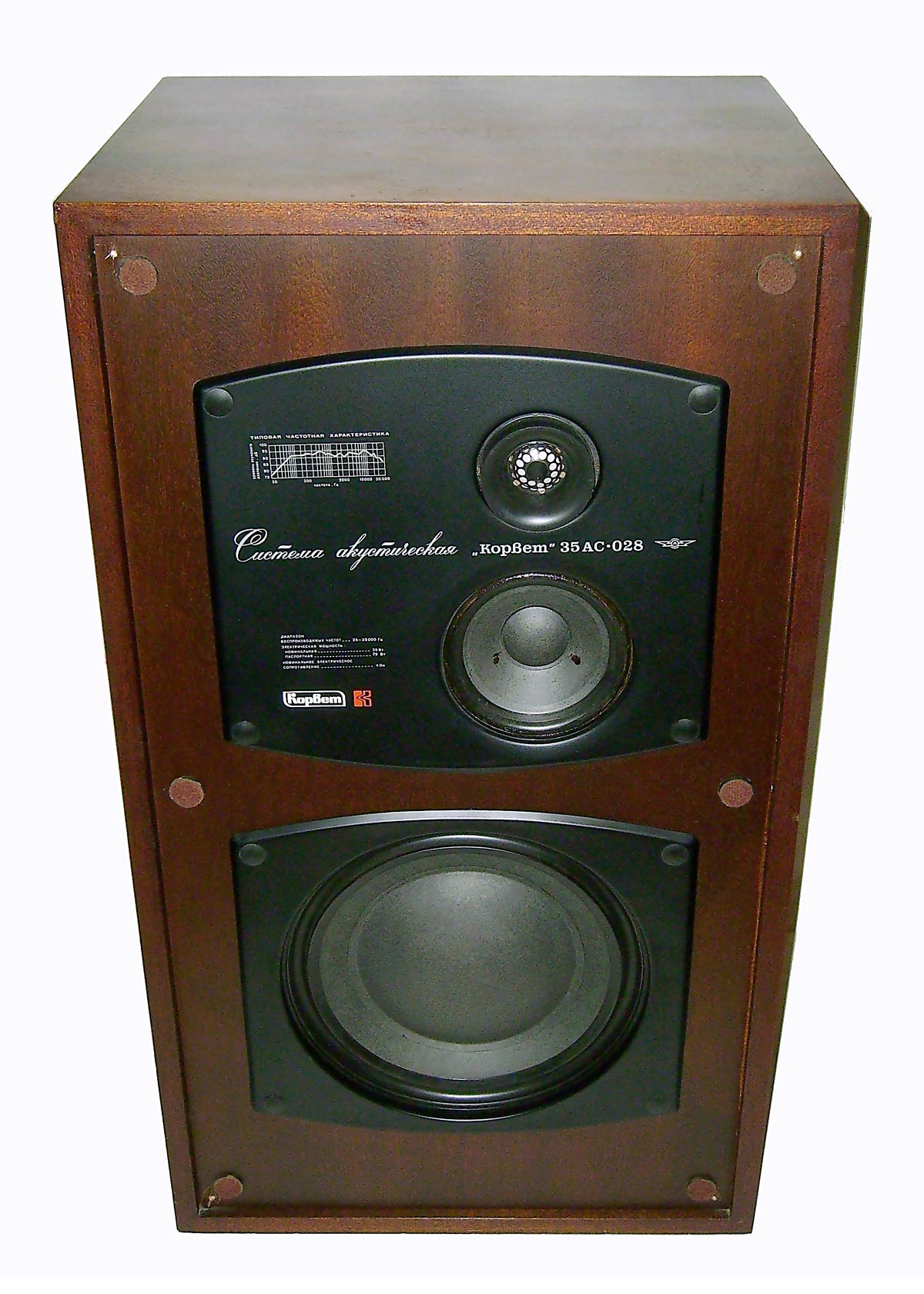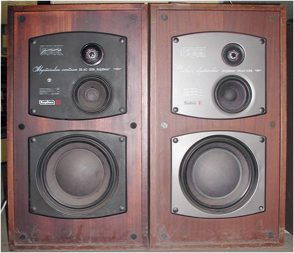 Акустические системы *Корвет 35АС-208* с 1982 года, *Корвет 35АС-028* и *Кливер 35АС-028* с 1986 года выпускали Ленинградское НПО *Океанприбор* и Краснолучский завод *Красный Луч*. Все акустические системы совершенно одинаковы. Они предназначены для высококачественного воспроизведения речевых и музыкальных программ и рассчитаны для совместной работы с УКУ высокого класса с сответствующей выходной мощностью. АС планировали выпускать в зеркальном варианте, но кроме опытных и рекламных образцов, серийные АС были не зеркальными. Объём АС - 99 дм/2. Диапазон рабочих частот звука - 25...25000 Гц. Номинальная мощность на входе 20 Вт. Максимальная мощность на входе 100 Вт. Масса одной акустической системы 30 кг.