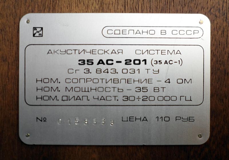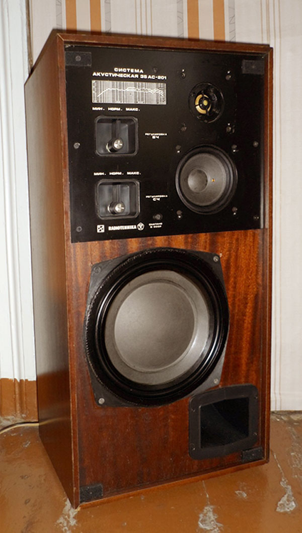 Акустическая система *35АС-201* (Радиотехника) выпускалась с 1981 года на Рижском ПО *Радиотехника*. АС заменила собой акустическую систему *35АС-1* и практически аналогична ей. АС *35АС-201* предназначена для высококачественного воспроизведения звуковых программ в сочетании с различными видами бытовой радиоаппаратуры. 3-х полосная напольная АС с фазоинвертором. Диапазон воспроизводимых частот 30...20000 Гц. Неравномерность АЧХ в диапазоне 100...8000 Гц ±4 дБ. Среднее звуковое давление 0,1 Па. Входное сопротивление 4 Ом. Минимальное значение импеданса 3,2 Ом. Номинальная подводимая мощность 35, паспортная мощность 70 Вт. Установленные динамики: НЧ 30ГД-1-25. СЧ 15ГД-11-120. ВЧ 10ГД-35-3000. Габариты АС - 700х360х280 мм. Вес 27 кг.