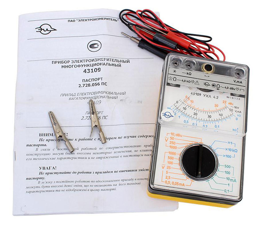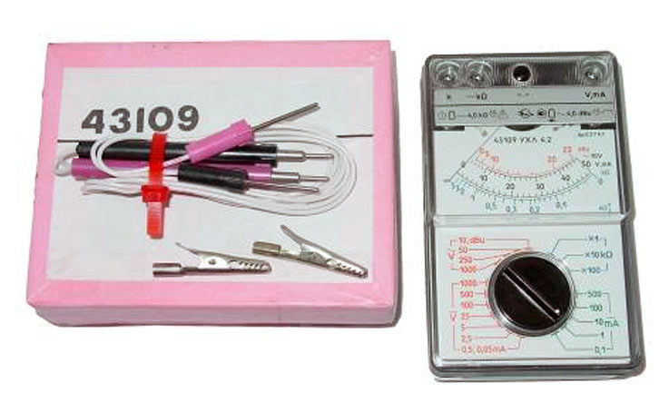 Прибор электроизмерительный многофункциональный *43109* предположительно с 1989 года выпускал Сарапульский завод имени С. Орджоникидзе. Прибор электроизмерительный многофункциональный *43109* с автоматической защитой от электрических перегрузок предназначен для измерения: силы и напряжения постоянного тока; среднеквадратического значения силы и напряжения переменного тока синусоидальной формы; сопротивления постоянному току; абсолютного уровня сигнала по напряжению переменного тока в электрических цепях объектов измерений, работоспособное состояние которых не нарушается их взаимодействием с прибором или выходом нормируемых характеристик прибора за пределы, установленные техническими условиями и указанные в настоящем паспорте.
