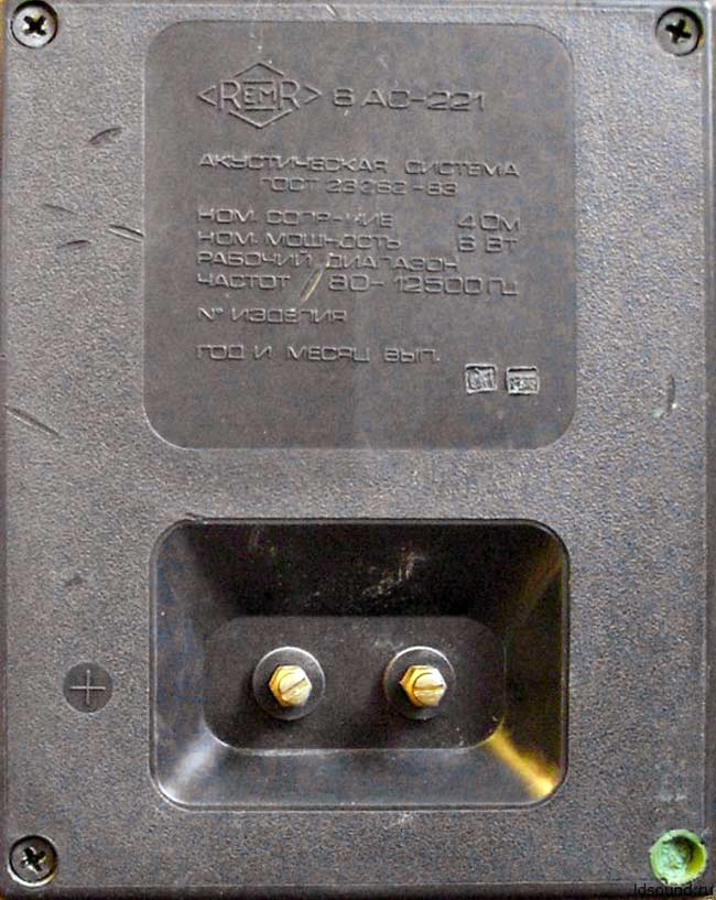 Акустическая система *6АС-221* (Radiotehnika S-20A) выпускалась с 1984 года Рижским ПО *Радиотехника*. АС входила в комплект электрофона *Радиотехника-301С*. 2-х полосная полочная АС закрытого типа. Диапазон частот 80...12500 Гц. Чувствительность 84 дБ. Сопротивление 4 Ома. Номинальная мощность АС - 6 Вт, паспортная 30 Вт. Динамики: НЧ/СЧ: 25ГДН-1-4 (в первых АС - 10ГД-34). ВЧ: 6ГДВ-1-16 (в первых АС - 3ГД-2). Частота раздела фильтра 5000 Гц. Размеры АС - 364х214х195 мм. Масса - 6 кг.