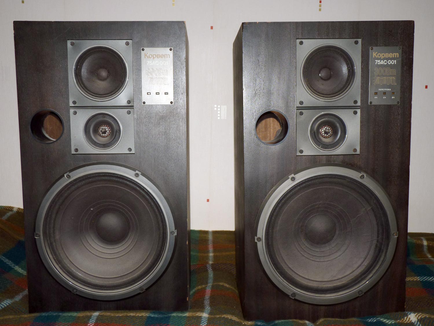 Акустические системы *Корвет 75АС-001* и *Кливер 75АС-001* с 1987 года выпускали Ленинградское НПО *Океанприбор* и завод *Красный Луч*. АС высшей группы сложности предназначены для высококачественного воспроизведения фонограмм. Рекомендуемая номинальная мощность применяемого совместно с АС усилителя 10...100 Вт. Предпочтительный вариант установки АС на подставке высотой 30...50 см. АС оличает высокая чувствительность к сигналам малой мощности и в то же время способность выдерживать высокие, до 300 Вт значения мощности. Благодаря этому АС работают в расширенном динамическом диапазоне без искажений. Полоса воспроизводимых звуковых частот 25...25000 Гц. Номинальная подводимая мощность 35 Вт. Номинальное входное сопротивление 8 Ом. Предельная долговременная подводимая мощность 150 Вт. Предельная кратковременная (пиковая) мощность 300 Вт. Вид акустического оформления - фазоинвертор. Габариты любой одной из двух наименований АС - 396х710х355 мм. Масса АС Корвет - 24 кг, Кливер - 40 кг.