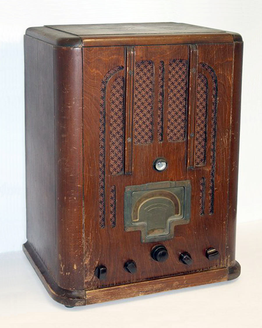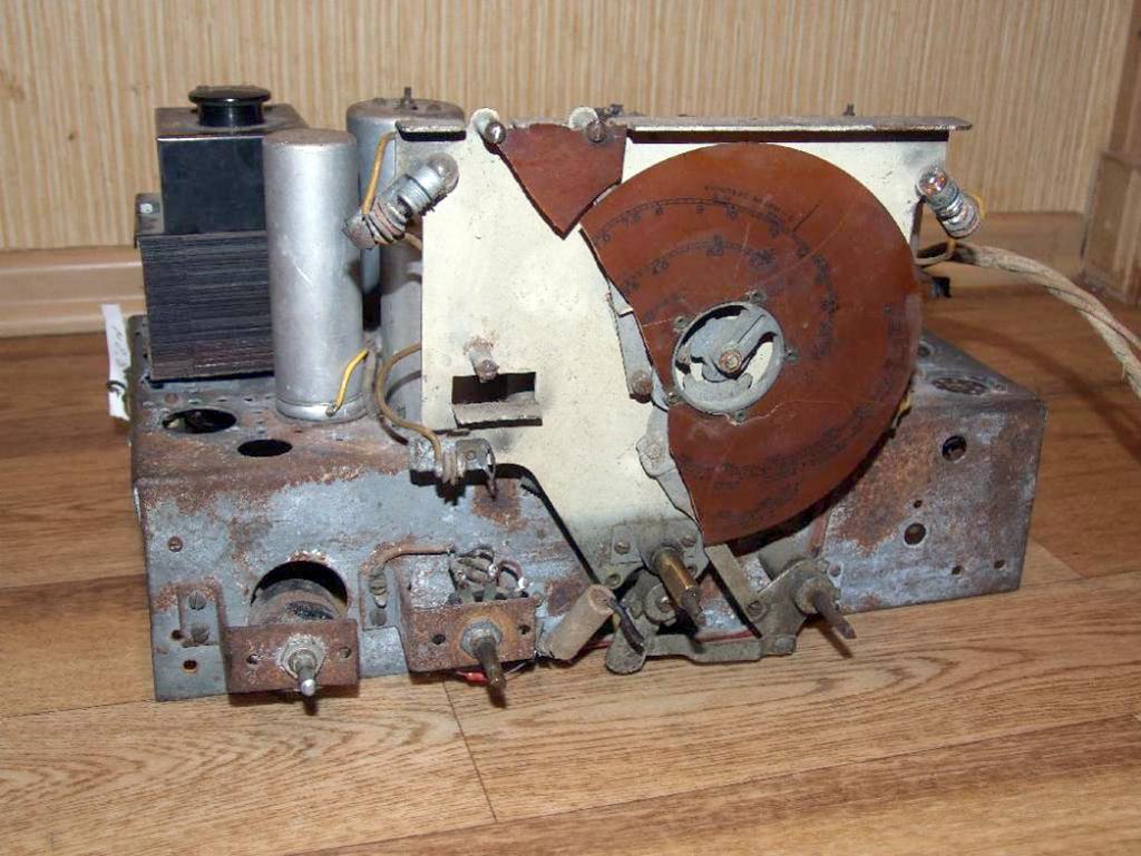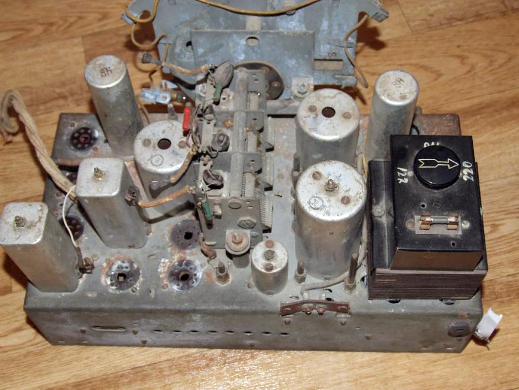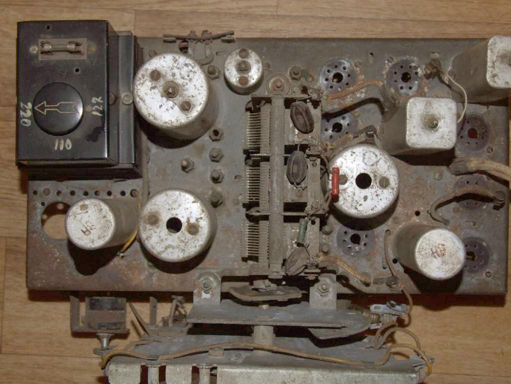 Радиоприёмник сетевой ламповый *9Н-4* возможно с 1937 года выпускал Воронежский завод *Электросигнал*. *9Н-4* это 9 ламповый Настольный приёмник 4-й разработки. Для его разработки модели была использована техническая документация фирмы **RCA** (США). В приёмнике применены радиолампы: 6К7, 6Л7, 6Ж7, 6Х6, 6Ф5, 6Ф6, 6Е5, 5Ц4С. В значительной серии выпущенных радиоприёмников применялись зарубежные лампы-аналоги. Диапазоны радиоволн: ДВ 715...2000 м (Х), СВ 175...575 м (А), промежуточные волны 46...170 м (В) и КВ 13,5...48 м (С). Чувствительность приёмника с хорошей наружной антенной на всех диапазонах около 50 мкв. Избирательность по соседнему каналу 46 дБ. Выходная мощность 2 Вт. Полоса воспроизводимых звуковых частот 80...6000 Гц. Потребляемая от сети мощность 75 Вт. Размеры футляра 580х310х420 мм. Вес аппарата 26 кг. На передней панели радиоприёмника имеется 5 ручек управления. Слева находится переключатель **музыка-речь** совмещенный с выключателем сети, далее громкость, сдвоенная ручка настройки на частоту с верньером, далее переключатель диапазонов и регулятор тембра по ВЧ. Радиоприёмник заключён в деревянный корпус. Для каждого диапазона есть своя отдельная шкала, отградуированная в Кгц и Мгц, сменяющаяся при переключении диапазонов и видимая через вырез в металлическом обрамлении. По нижней шкале отградуированной в УЕ, можно легко запомнить настройку на интересную радиостанцию. Индикатор настройки выполнен на лампе 6Е5.