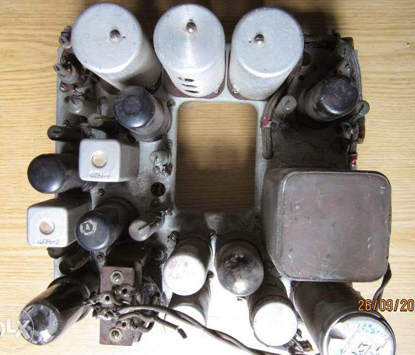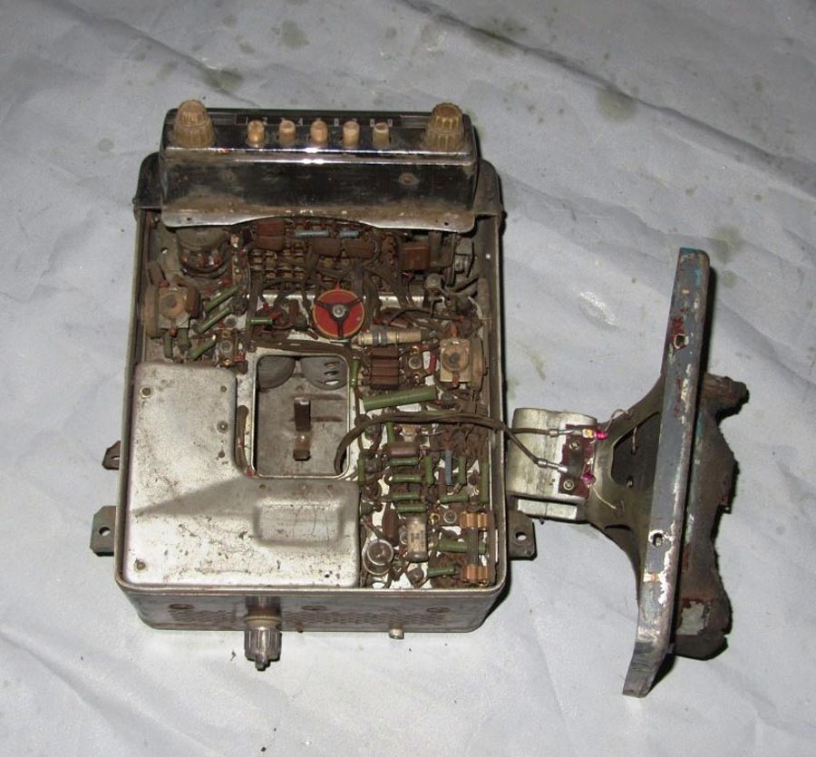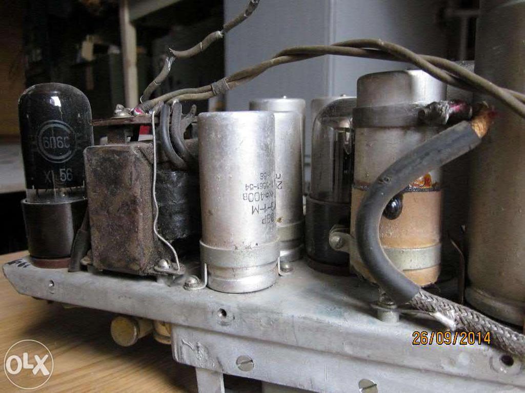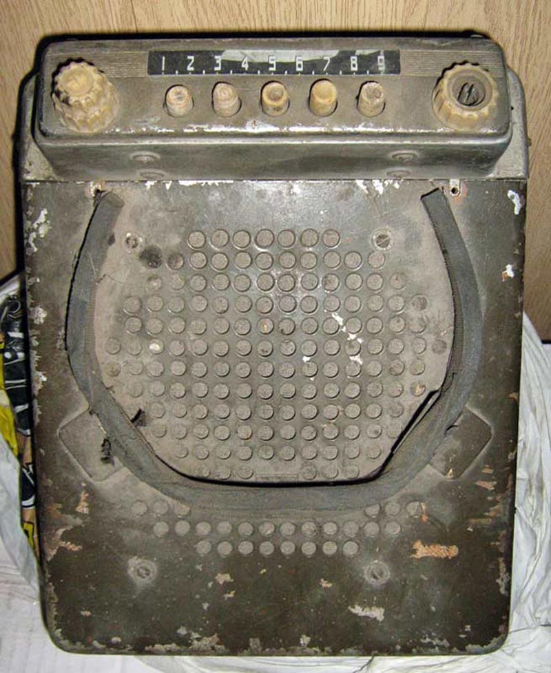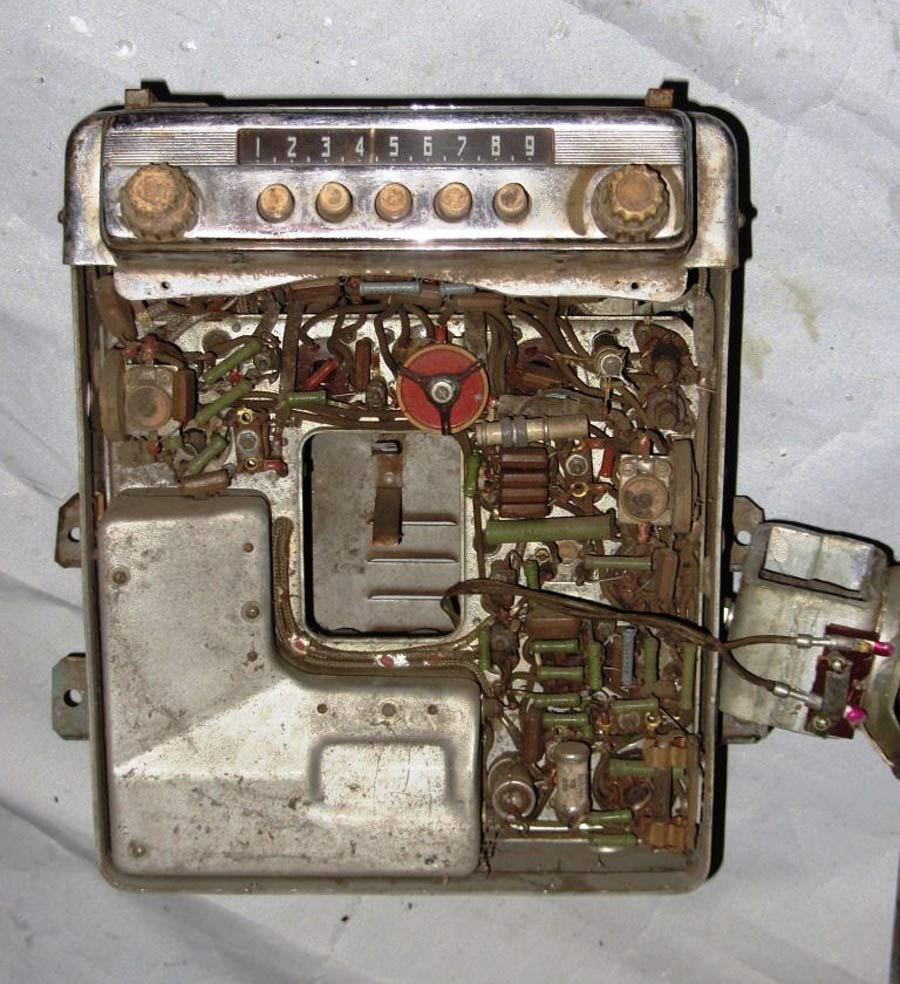 Радиоприёмник автомобильный *А-5* с 1952 года выпускал Муромский радиозавод. Приёмник **А-5** является 6 ламповым супергетеродином и предназначен для установки в автомобилях **ЗИЛ-110**, **ЗИМ** (ГАЗ-12). Выпускался в 2-х вариантах, с питанием от аккумуляторов напряжением 6 и 12 В. Питание анодов у ламп от вибропреобразователя. Приёмник вместе с громкоговорителем и блоком питания собран в общем корпусе. Дополнительный громкоговоритель стоял в задней части салона автомобиля или за перегородкой. Настройка приёмника производится изменением индуктивности катушек, с помощью перемещения сердечников из альсифера. Катушки индуктивности вместе с кнопочным переключателем, выключателем питания, регуляторами громкости и тембров выполнены отдельным блоком. Шкала с условной градуировкой в виде равномерных делений и освещается с торцов, цвет её меняется в зависимости от положения регуляторов тембра с помощью цветных светофильтров, укреплённых на осях этих же регуляторов; красный подчеркивает высшие частоты, зеленый низшие, белый указывает на воспроизведение средних частот звукового спектра. Технические параметры: Диапазоны частот: ДВ 150...410 кГц, СВ 530...1450 кГц, КВ1 6...6,25 МГц, КВ2 9,5...9,7 МГц, КВ3 11,7...11,9 МГц. ПЧ 465 кГц. Чувствительность модели в ДВ диапазоне 200, СВ 50, в диапазоне КВ 40 мкВ. Избирательность по соседнему каналу 28 дБ. По зеркальному 34 дБ на ДВ, 40 дБ на СВ и 34, 30, 20 дБ соответственно на КВ поддиапазонах. Диапазон воспроизводимых частот 80...5000 Гц. Выходная мощность 2 Вт. Потребляемая мощность 53 Вт.