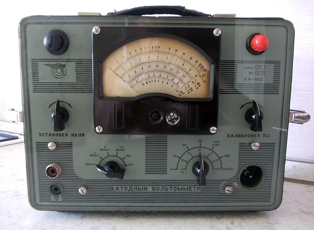 Катодный вольтомметр *А4-М2* выпускался с начала 1956 года. Предназначен для измерения постоянных и переменных напряжений, сопротивлений постоянному току, величины ёмкости и индуктивности. Шкала отградуирована в эффективных значениях напряжения. Прибор измеряет постоянные и переменные напряжения до 1000 В. С выносным делителем предел измерения может быть расширен до 10 кВ постоянного напряжения. Точность измерения постоянных и переменных напряжений от 3 до 6%. Прибор позволяет измерять сопротивления постоянному току от 1 ома до 100 мегом, индуктивность от 100 мгн до 100 гн и ёмкостей от 100 пф до 100 мкф. Точность измерения сопротивлений 10%, индуктивностей и ёмкостей 15%. Питание от сети 127 или 220 В, с частотой 50 Гц или 115 В, 400 Гц.