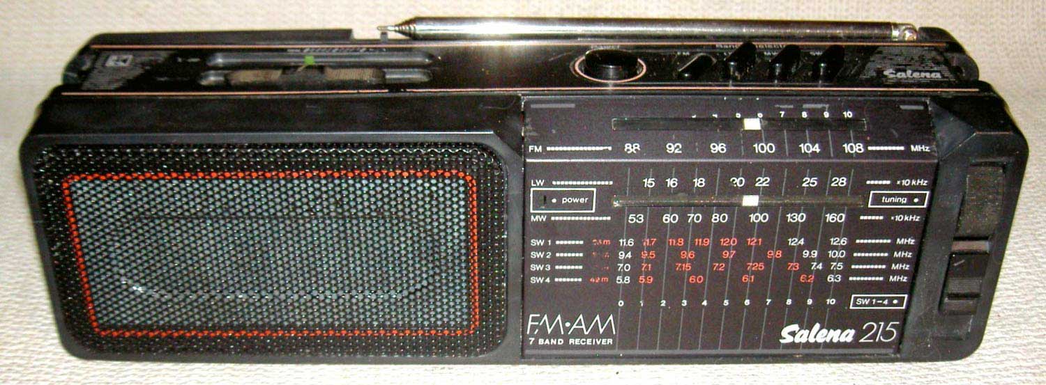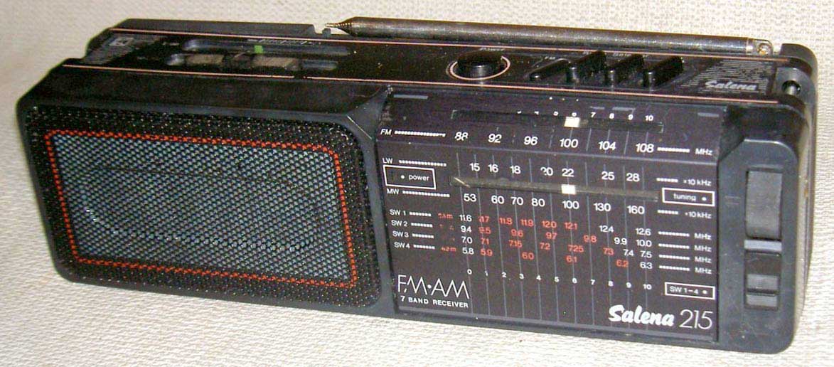 Портативный радиоприёмник *Salena-215* (Абава РП-8332) с I-кв 1987 года выпускал Кандавский радиозавод. Первоначально радиоприёмник именовался как **Abava-8332**, затем модель была переработана, усложнена и стала именоваться **Salena-215** в экспортном ваварианте. Приёмник выпускался и как **Aбава-8332**, но с 2-мя КВ диапазонами. Приёмник работает в диапазонах: ДВ, СВ, 4х (bkb 2- 8332) поддиапазонах КВ, от 5,9 МГц до 12,1 МГц и в одном из УКВ диапазонов ЧМ - 65,8...74 МГц или же FM 87,5...108 МГц. Габариты приёмника 337х102х84 мм, его вес 1,4 кг.