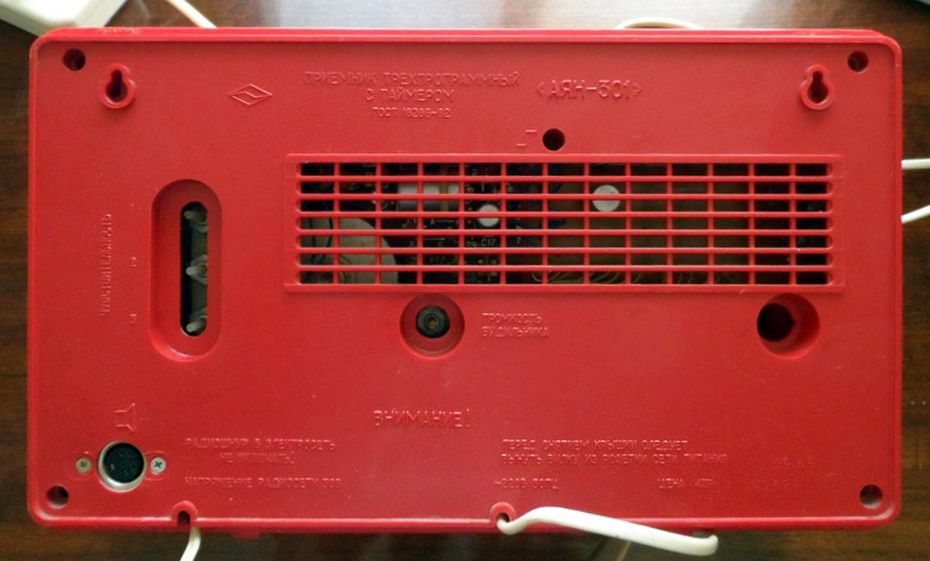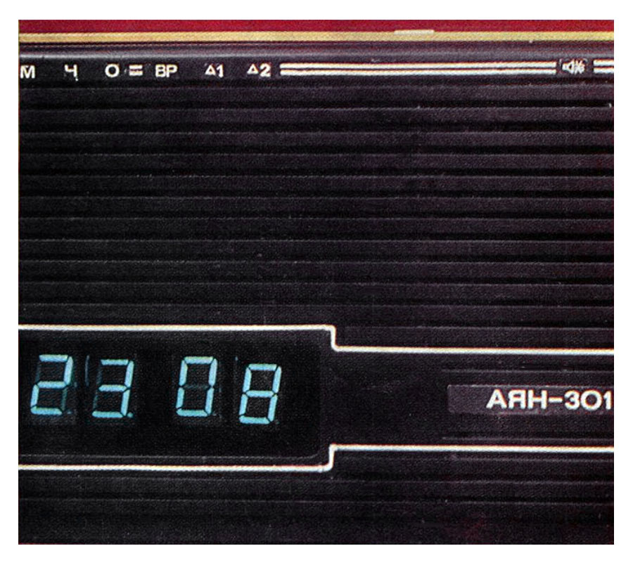 Приёмник трёхпрограммный *Аян-301* с таймером выпускался с 1983 года Тувинским машиностроительным заводом. Предназначен для прослушивания одной низкочастотной программы с усилением звука и двух высокочастотных, передаваемых по уплотнённой системе, а так же включение и выключение приёмника в заданное время и отображение текущего времени. На последней фотографии на плате отсутствует микросхема таймера.