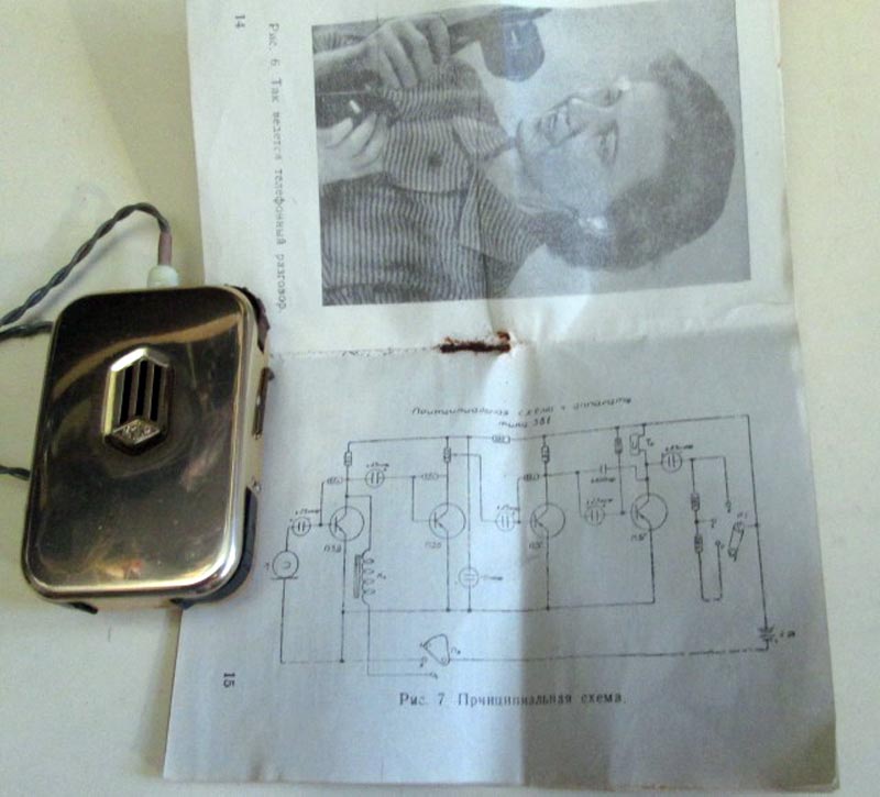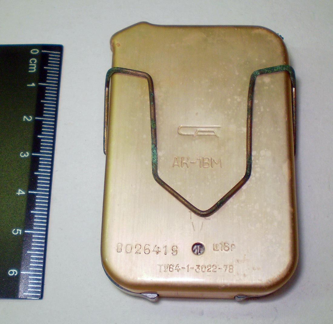 Слуховой аппарат *АК-1* (581М) выпускался предположительно с 1965 года Московским заводом слуховых аппаратов. Применяется для компенсации малых, больших и средних потерь слуха по воздушной или костной проводимости. Может работать с питанием от одного или двух аккумуляторов, что соответственно обеспечивает максимальное акустическое усиление 60 и 128 дБ. Имеет плавную регулировку громкости и четырехступенчатый регулятор тембра. Завод выпускал две модели: АК-1В, укомплектованную телефоном воздушной проводимости, и модель АК-1К, укомплектованную телефоном костной проводимости. Аппарат приспособлен для телефонных разговоров и исключает воздействие внешних шумов. Габариты аппарата 66х44х15 мм, масса с двумя аккумуляторами 75 гр. Предположительно с 1978 года завод выпускал модернизированный аппарат *АК-1* (ВМ или КМ) отличающийся переводом схемы с германиевых на кремниевые транзисторы и соответственно более современной элементной базой.