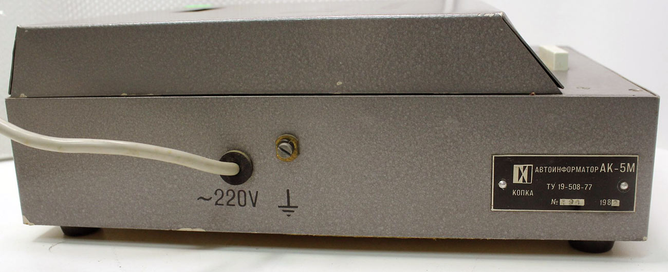Автоинформатор *АК-5М* выпускался предположительно с 1978 года Киевским опытным предприятием *Киноавтоматика*. Описание *АК-5М* - ниже.