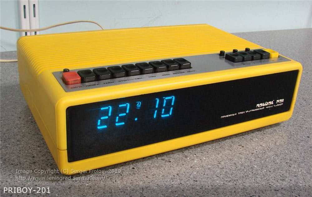 Приёмники трёхпрограммные *Алатау-201* и *Прибой-201* с 1986 года выпускали Ленинградский завод *Пластприбор* и Алма-Атинский ЭТЗ. Кроме наименования ПТ одинаковы, поэтому описан ПТ *Прибой-201*. ПТ с электронными часами **Прибой-201** сочетает в себе ПТ 2-й группы сложности и электронные часы, способные работать в режимах таймера и будильника. Помимо удобств, комбинация 2-х приборов постоянного пользования имеет также определенный экономический эффект, так как при этом снижаются энергопотребление, материалоёмкость и себестоимость изделия. По техническим и потребительским характеристикам, по уровню разработки и производства ПТ **Прибой-201** соответствует высшей категории качества. Его параметры лучше нормируемых ГОСТом для ПТ 2-й группы сложности: шире диапазон воспроизводимых частот на НЧ каналах 100...12500 Гц, несколько больше отношение сигнал/фон - 46 дБ, меньше коэффициент гармоник по звуковому давлению в области звуковых частот 100...200 Гц по НЧ каналу и 200...400 Гц по НЧ и ВЧ каналам. Номинальная выходная мощность 0,4 Вт. Потребляемая мощность 3,2 Вт. Есть ступенчатая регулировка тембра ВЧ. Габариты ПТ - 320х200х94 мм. Масса - 2,6 кг.