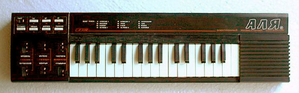 Электронный музыкальный синтезатор *Аля* производился с 1991 года Запорожским ПО *Радиоприбор*. Синтезатор имеет уменьшенную мини-клавиатуру, современный внешний вид и широкие функциональные возможности. Инструмент представляет собой мелодический музыкальный синтезатор, предназначенный в основном для развития творческих способностей и получения навыков игры на электронных клавишных инструментах, он может быть использован как для домашнего музицирования, так и для исполнения сольных партий в любительский ансамблях, а также для создания звуковых эффектов. ЭМИ позволяет получать звучание, характерное для традиционных инструментов (флейта, гобой, кларнет, горн, труба, валторна, орган, виолончель, ксилофон, различные варианты звучания электропианино и клавесина), имитировать звучание колокольчика, гитары, балалайки, музыкальной шкатулки, электрогитары с бустером, вводить выделение звука, характерного для медных духовых инструментов, тембровую модуляцию, изменять скорость затухания звука и уровень поддержки, использовать *вау*-эффект, регулируемое по глубине и частоте частотное вибрато. Инструмент имеет возможность транспонировать строй на одну октаву вверх или вниз, осуществлять игру приемами легато и стаккато, плавно изменять громкость и тембр звучания, также имеется внутренний громкоговоритель и предусмотрена возможность подключения внешнего усилителя или головных телефонов, а также внешнего источника питания. В ЭМИ используются псевдосенсорные органы коммутации со светодиодной индикацией режима работы, резонансы корпуса и динамика устранены специально рассчитанной панелью акустического сопротивления, синтезатор прост в управлении и не требует специальной подготовки, наличие фиксированных режимов работы в сочетании с органами плавного управления делает его удобным в работе и не сдерживает творческую фантазию исполнителя. Разработчики В.К.Рентюк (автор и главный конструктор), Е.В.Кухта, Э.С.Загоруля. Всего выпущено около 1000 инструментов. Технические характеристики: Номинальная выходная мощность 0,25 Вт. Номинальное напряжение источника питания 9 В. Диапазон питающих напряжений 6,3...12 В. Максимальный потребляемый ток 0,2 А. Диапазон клавиатуры, октав: 2 и 8/12. Диапазон звучания, октав: 4 и 8/12 (от F до с4). Генератор огибающей: три основных типа. Органы управления: Выключатель питания. Регулятор громкости. Регулятор скорости затухания. Регулятор тембра. Регулятор глубины тембровой модуляции (Контур). Регулятор глубины вибрато. Регулятор частоты вибрато. Тип вибрато: частотное в диапазоне 5...9 Гц. Коммутация режимов: псевдо-сенсоры с индикацией. Количество регистров 3. Количество основных (типовых) тембров: 12 (четыре в каждом регистре). Тональность настройки: До-мажор. Возможность подстройки тональности: есть. Возможность подстройки строя: есть. Габаритные размеры ЭМИ 470х120х40 мм. Вес без элементов питания 1,2 кг.