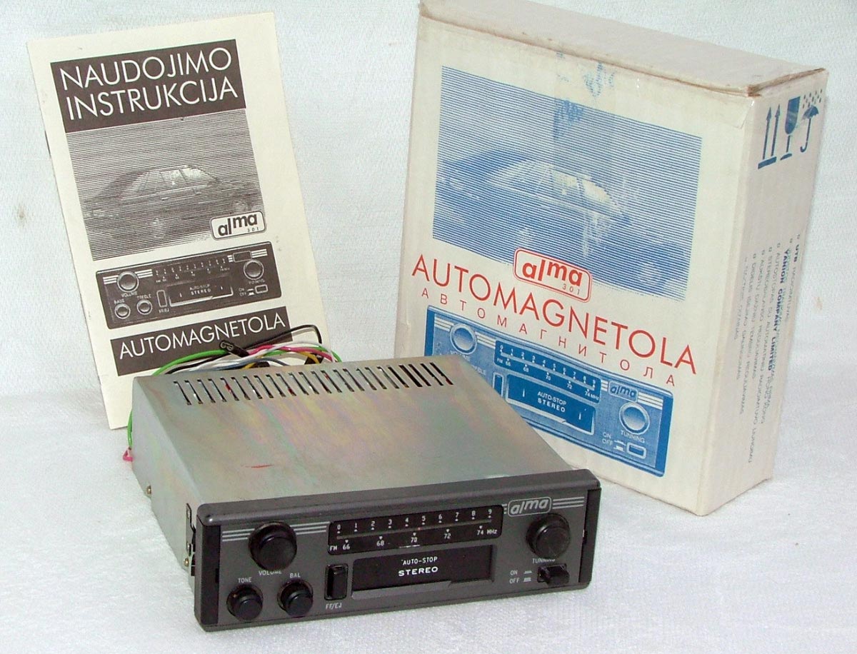 Автомобильная магнитола *Алма-301* с I-кв 1994 года выпускало АО *АЛМА*. После распада СССР Государственный оборонный завод *АЛМА* находящийся в городе Алитус на юге Литвы был преобразован в ПО *АЛМА*. Магнитола *Алма-301* его первая бытовая продукция. Всего было выпущено около пяти тысяч магнитол *Алма-301*. Технические параметры модели в инструкции по эксплуатации.