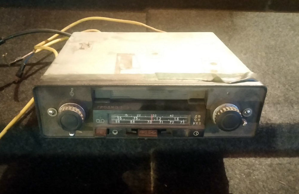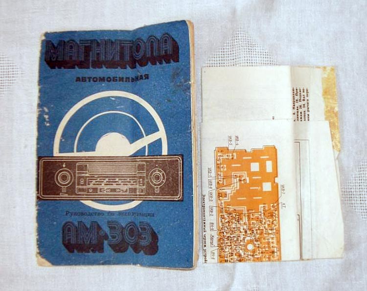 Автомобильные магнитолы *АМ-303* и *Гродно-303* с I-кв 1981 года выпускали Загорское ПО *Звезда* и Гродненский завод автомагнитол. Магнитолы одинаковы и предназначены для установки в автомобилях Волга ГАЗ-24. Магнитола работает в диапазонах ДВ, СВ, УКВ и воспроизводит фонограммы с магнитофонных кассет МК. Магнитолу можно установить и в салонах автомобилей Жигули ВАЗ-2101, ВАЗ-2102, ВАЗ-21011 или Москвич-2140, Москвич-2138. Магнитола работает от штыревой антенны типа АР-104Б, но можно использовать и АР-105, АР-108. В магнитоле предусмотрена АРУ, АПЧ в диапазоне УКВ, регулировка громкости, ускоренная перемотка ленты вперед и назад, автоматическое переключение режима работы с воспроизводения записей на приём радиостанций, кнопка пауза. При включённой магнитоле магнитофон выключается при установке кассеты в паз на лицевой стороне магнитолы и легком нажатии на кассету. В комплекте: АС из динамической головки 4ГД-8Е, 3 предохранителя ПМ2 (2А), кассета МК-60 с фонограммой в футляре, 2 резиновых пассика, 2 лампы СМН10-55-2, 6 шайб крепления подкассетника, провод для подключения к магнитоле АС. Диапазоны: ДВ - 150...405 кГц; СВ - 525...1.605 кГц; УКВ - 65,8...73,0 МГц. ПЧ трактов AM 465 кГц; ЧМ 10,7 МГц. Реальная чувствительность: ДВ - 150 ; СВ 50; УКВ - 5,0 мкВ. Избирательность по соседнему каналу на ДВ, СВ - 36 дБ, по зеркальному каналу: ДВ - 56; СВ - 46 дБ. Действие АРУ: при изменении входного сигнала на 26 дБ соответствующее изменение на выходе не более 6 дБ. Номинальная выходная мощность при КНИ 4% - 2,5 Вт, максимальная 4 Вт. Полоса воспроизводимых звуковых частот: ДВ, СВ 125...3550; УКВ и воспроизведении магнитной записи 125...7100 Гц. Скорость магнитной ленты 4,76 см/с. Коэффициент детонации ±0,35%. Питание от аккумулятора. Габариты АМЛ - 200х57х175 мм. Масса 4 кг.