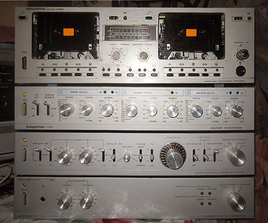 Стереофонический двухкассетный магнитофон-приставка *Амфитон МП-103С* опытно выпущен в 1986 году Ульяновским механическим заводом.
