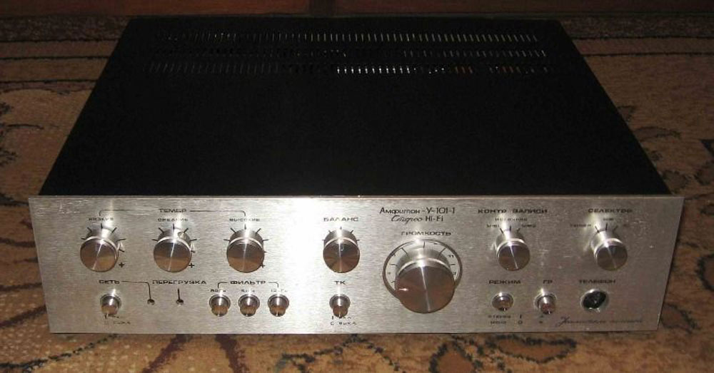 Усилитель низкой частоты *Амфитон У-101-1С* выпускался с 1986 года Львовским ЛПО имени Ленина. Усилитель первой группы сложности предназначен для двухканального усиления и коммутации сигналов НЧ от различных источников звуковых программ при работе в помещении. Основные технические характеристики: Диапазон воспроизводимых частот: 20...20000 Гц. Неравномерность АЧХ: ±1,5 дБ. Сопротивления подключаемых АС: 4 Ом. Номинальная мощность: 20 Вт/4 Ом. Коэффициент нелинейных искажений: 0,3%. Потребляемая мощность: 125 Вт. Размер усилителя: 430х125х405 мм. Масса: 11,5 кг.