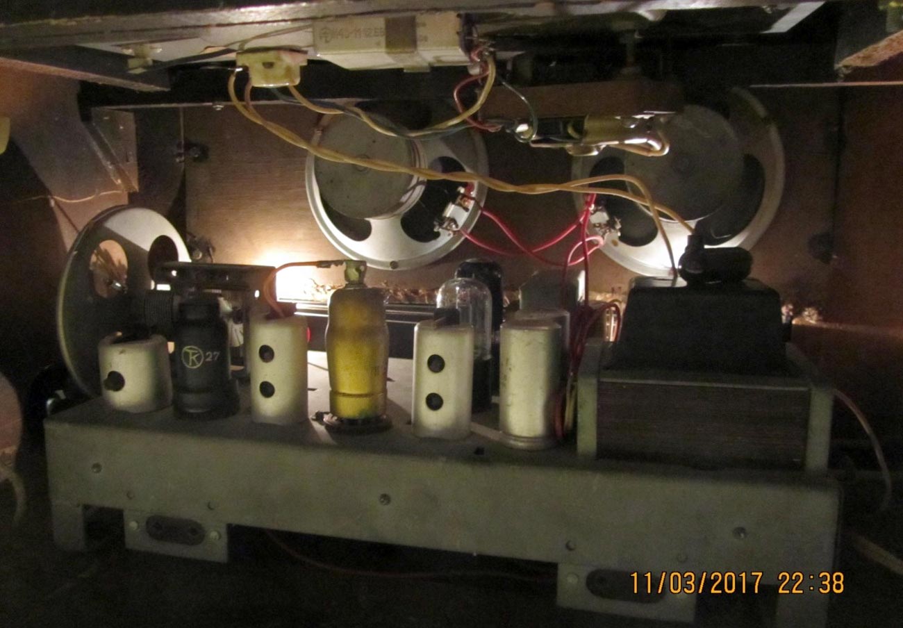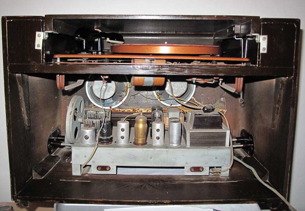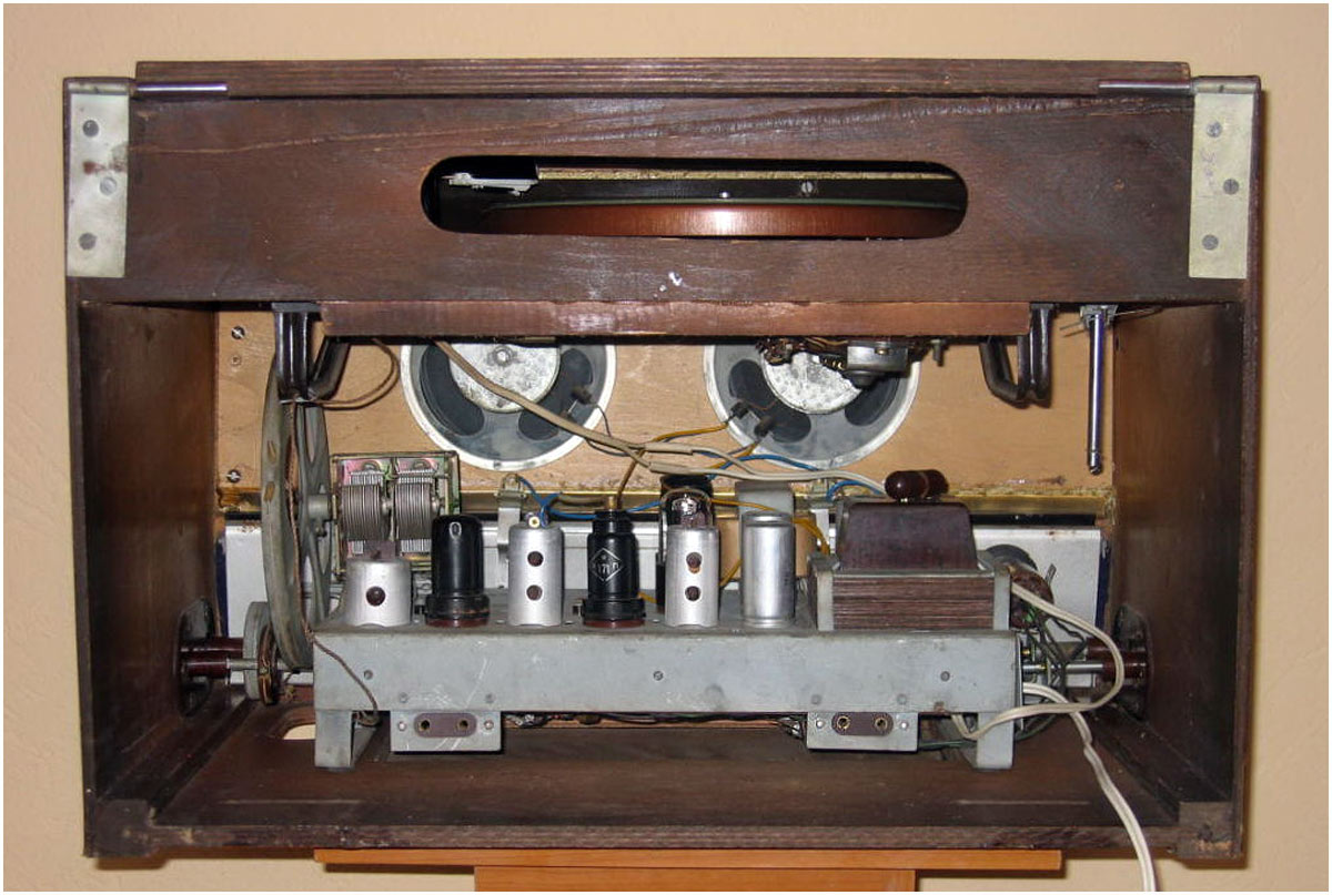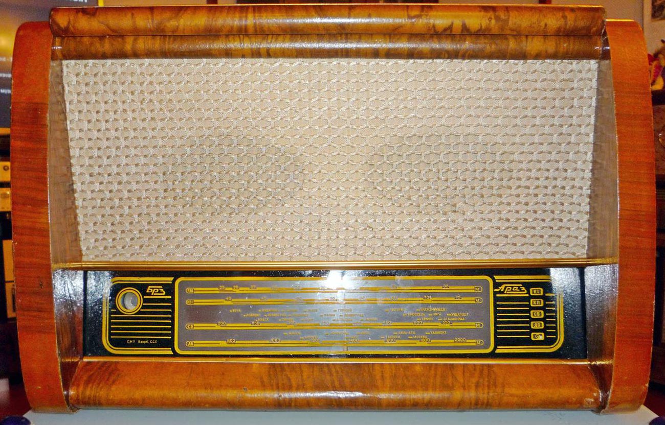 Радиолы сетевые ламповые *Араз* и *Араз-М* с 1953 и 1956 года выпускал Бакинский радиозавод. **Араз** в переводе с азербайджанского на русский - река Аракс. Радиола состоит из 6-ти лампового; 6А7, 6Б8С, 6Н9С, 6П6С, 6Е5С и 6Ц5С радиоприёмника и двухскоростного ЭПУ, с асинхронным двигателем и пьезоэлектрическим звукоснимателем с корундовыми иглами. Диапазоны: ДВ и СВ стандартные, КВ1 3,95...8,15 мГц и КВ2 9,99...12,2 мГц. Чувствительность на ДВ, СВ 200, на КВ 300 мкВ. Селективность 26 дБ. ПЧ 465 кГц. Диапазон звуковых частот при проигрывании грамзаписи 200...7000 Гц, при приёме радиостанций 200...3500 Гц. Номинальная выходная мощность на громкоговорителях 1ГД-6 1,5 Вт. Потребляемая мощность 50 Вт при работе ЭПУ и 35 Вт при радиоприёме. Слева, сбоку футляра находятся регуляторы тембра и громкости, справа настройки, переключатель диапазонов и режима проигрывания грампластинок. В 1956 году модель модернизирована в радиолу **Араз-М**. При другом оформлении её электрическая схема и конструкция почти не изменились. На базе радиолы *Араз* образца 1953 года выпуска для расширения ассортимента продукции был создан приёмник *Баку-55*, по оформлению схожий с радиолой *Араз*.