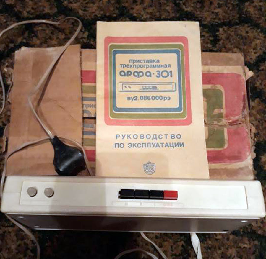 Приставка трёхпрограммная *Арфа-301* с 1981 года выпускалась Рыбинским заводом приборостроения. Приставка рассчитана на работу вместе с абонентским громкоговорителем и работает в сети трехпрограммного проводного вещания с напряжением 30 или 15 В. В ПТ имеется регулировка чувствительности ВЧ каналов. Приставку можно установить на стол или прикрепить к стене. Чувствительность ВЧ каналов - 0,25 В. Номинальная выходная мощность - 250 мВт. Диапазон воспроизводимых звуковых частот на выходе приставки 160...6300 Гц. Потребляемая мощность от сети 2,5 Вт. Габариты приставки 270х121х42 мм, вес 1,5 кг.