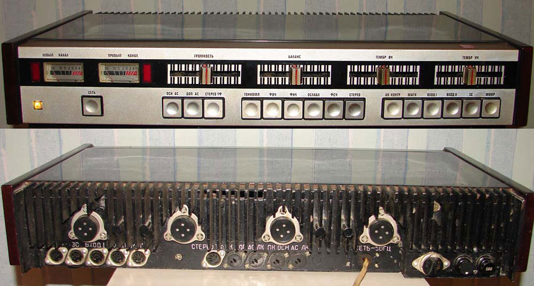 Усилительно - коммутационные устройства *Арктур-001-стерео*, *Арктур-002-стерео* и *Aрктур-101-стерео* с 1976 года выпускал Бердский радиозавод. УКУ **Арктур** предназначены для высококачественного воспроизведения музыкальных программ от магнитофонных приставок, ЭПУ, тюнеров, микрофонов и т.д. Усилители имеют защиту от перегрузки выходных транзисторов, а в моделях высшего класса имеются стрелочные индикаторы выходных сигналов, фильтры ВЧ и НЧ для сужения полосы частот, фильтры **присутствия**. Модели высшего класса выполнены на транзисторах, первого на транзисторах и интегральных схемах. Номинальная выходная мощность усилителя **Арктур-001 стерео** 25 Вт, **Арктур-002-стерео** 15 Вт, **Apктyp-101-стерео** 10 Bт, максимальная 35, 25 и 15 Вт. Полоса частот моделей высшего класса 20...20000 Гц. Коэффициент нелинейных искажении 0,7. Питание от сети переменного тока напряжением 127 или 220 В. Размеры моделей высшего класса 110х526х310 мм, первого класса 110х500х320 мм. Масса по 14 кг. УКУ рассчитаны на работу с акустическими системами 15АС-1 и 25АС-2. Первая рассчитана на номинальную мощность 15 Вт, максимальную 25 Вт, в ней установлены 2 головки типа 6ГД-6, одна 6ГД-11. Полоса её рабочих частот 63...20000 Гц, габариты 400х240х175 мм, вес 8 кг. Вторая АС рассчитана на подводимую мощность 25 Вт, максимальную 35 Вт. В ней установлено по головке 25ГД-26, 10ГД-33 и 3ГД-31. Имеется коррекция АЧХ в диапазоне 500...5000 Гц. Переключается АЧХ кнопками на лицевой панели. Полоса рабочих частот 40...20000 Гц. Размеры 25АС-2 - 480х286х250 мм, масса 12 кг. С начала 1976 года на Запорожском заводе *Радиоприбор* выпускали УКУ - *Такт-101-стерео* во всём аналогичное УКУ - *Арктур-101-стерео*.