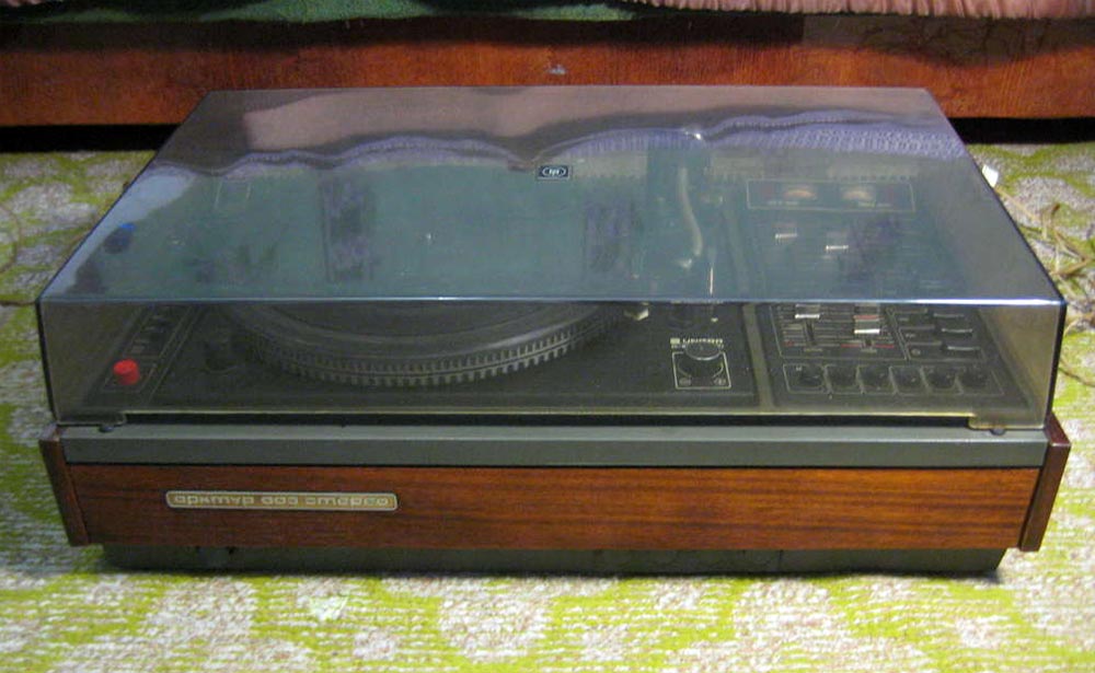Электрофон сетевой транзисторный *Арктур-003 стерео* с I-кв 1977 года выпускал Бердский радиозавод. Стереофонический электрофон высшей группы сложности **Арктур-003-стерео** - предназначен для воспроизведения записей с моно или стерео грампластинок с частотами вращения диска 33 и 45 об/мин. Электрофон *Арктур-003 стерео* разработан на базе серийного усилительно-коммутационного устройства **Арктур-001-стерео**. Кроме регуляторов громкости и тембра по НЧ и ВЧ частотам, в электрофоне имеются коммутируемые фильтры НЧ и ВЧ частот с помощью которых можно сузить, расширить и выделить полосу воспроизводимых частот, активный фильтр **присутствия**, а так же стрелочные индикаторы выходных уровней обоих усилителей стереоканалов. В новом электрофоне применено ЭПУ G-600 В (ПНР) или другое подобное с магнитной головкой звукоснимателя. Частота вращения диска устанавливается по встроенному стробоскопу. Электрофон комплектуется двумя трехполосными громкоговорителями типа 25АС-2. Номинальный диапазон воспроизводимых частот по звуковому давлению 40...20000 Гц. Синусоидальная номинальная выходная мощность 25 Вт. Уровень фона по напряжению при синусоидальной выходной мощности -50 дБ. Коэффициент детонации ЭПУ ±0,1 %. Потребляемая от электросети мощность 150 Вт. Габариты электропроигрывателя 615х385х200 мм, одной АС - 480х285х250 мм. Масса электропроигрывателя с усилителем НЧ - 22 кг.