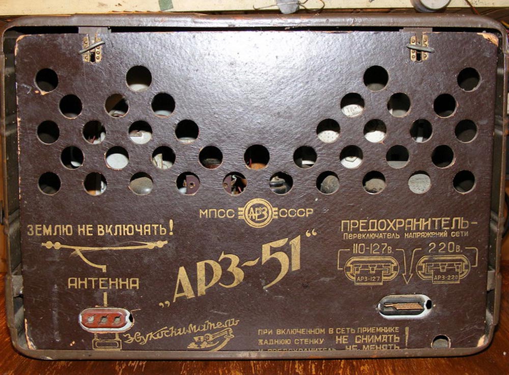 Радиоприёмник сетевой ламповый *АРЗ-51* с 1951 года выпускал Александровский радиозавод. Радиоприёмник **АРЗ-51** заменил модель **АРЗ-49**. Основные отличия новой модели от предыдущей отмечены в замене лампы выходного каскада на 6П6С и упрощении некоторых схемных элементов. Изменилась схема блока питания на двухполупериодную с кенотроном 6Ц5С. По внешнему виду, габаритам и массе приёмник почти не отличался от предыдущего. Диапазоны рабочих частот: ДВ 150...415 кГц, СВ 520...1600 кГц. Промежуточная частота 110 кГц. Чувствительность модели около 300 мкВ. Чувствительность с гнёзд звукоснимателя 0,25 В. Избирательность по соседнему каналу при расстройке на 10 кГц не менее 20 дБ. Избирательность по зеркальному каналу 15 дБ. Диапазон воспроизводимых звуковых частот не уже 200...3000 Гц. Выходная мощность на новом громкоговорителе 1ГД-1 при КНИ 10% около 0,5 Вт. Потребляемая от сети мощность 40 Вт.
