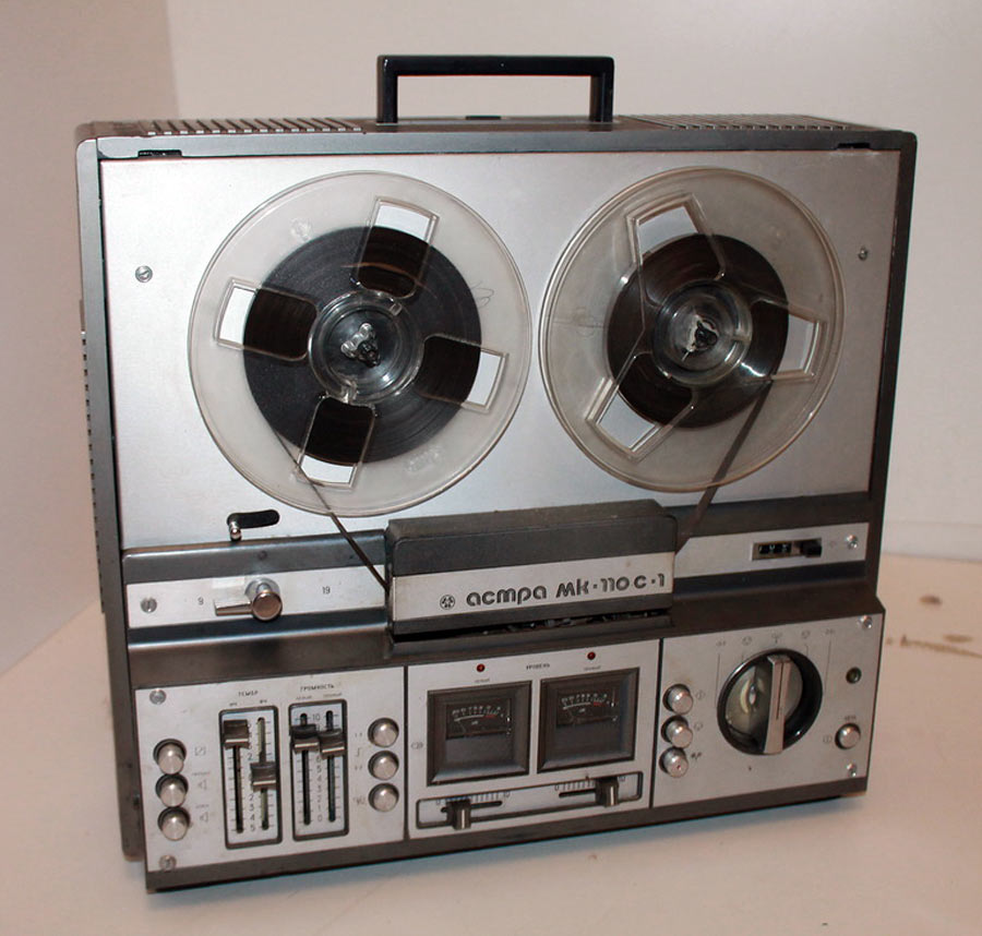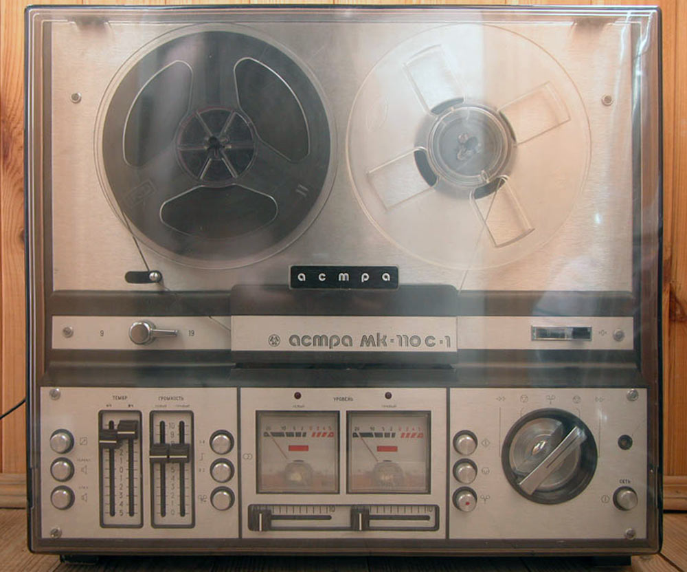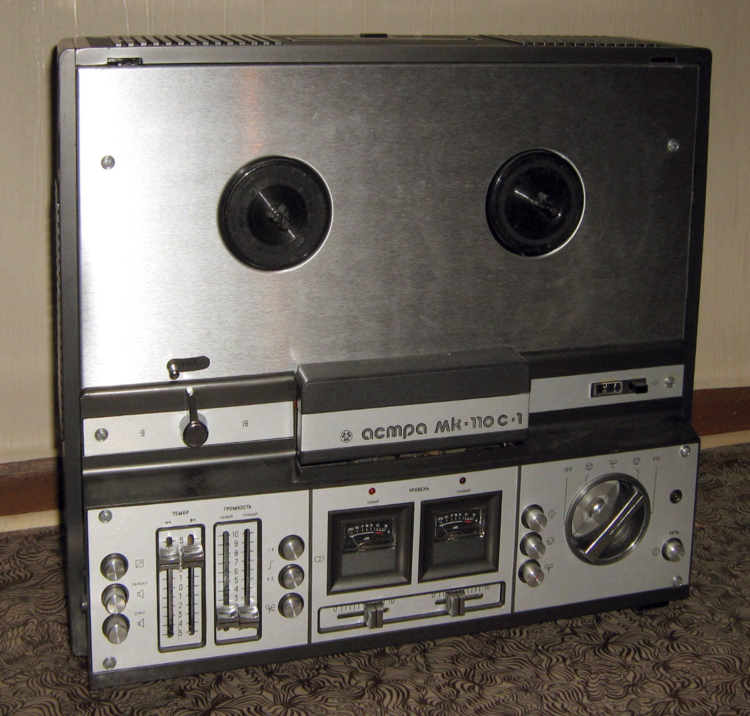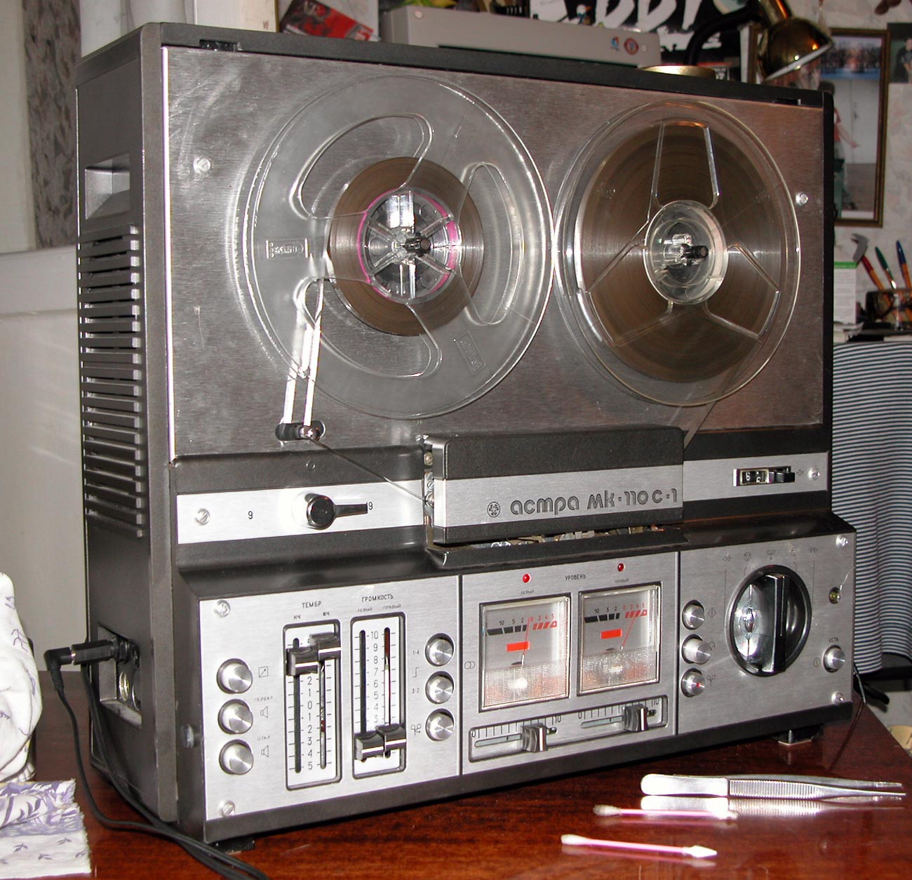 Катушечный магнитофон *Астра-110-1-стерео* с осени 1987 года выпускал Ленинградский завод *Техприбор*. Магнитофон *Астра-110-1-стерео* (с начала 1988 года *Астра МК-110С-1*) предназначен для записи и воспроизведения звуковых фонограмм. Скорость движения магнитной ленты 19,05 и 9,53 см/сек. Магнитная лента Б-3716 или Б-3715. Взвешенное значение детонации на скорости 19,05 см/с - 1,4%, 9, 53 см/с - 1,7%. Частотный диапазон записи и воспроизведения на скорости 19,05 см/сек - 20...24000 Гц, 9,53 см/сек - 40...14000 Гц. Пределы регулирования тембра НЧ и ВЧ не менее +8 -10 дБ. Номинальная выходная мощность при работе на выносную АС 15 Вт, на АС 5 Вт. Потребляемая мощность 55...70 Вт. Габариты магнитофона - 463х422х170 мм. Его масса 15,5 кг. Цена 465 рублей.