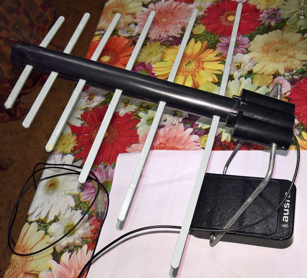 Антенна комнатная телевизионная ДМВ диапазона *Ашура-4М* (АТН-5.10) выпускалась предположительно с 1987 года Вильнюсским заводом радиоизмерительных приборов.