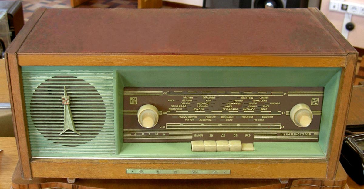 Ausma - по латышски рассвет. Стационарный транзисторный радиоприёмник *Аусма* в 1962 году опытной партией выпустил Рижский завод имени А.С.Попова. **Аусма** стал первым отечественным настольным транзисторным радиоприёмником с УКВ диапазоном и универсальным питанием. По сравнению с ранее выпускавшимися моделями, приёмник имеет лучшее звучание, устойчивость параметров при снижении питания, возможность приёма ЧМ станций. Приём ДВ и СВ станций ведётся на поворотную магнитную антенну, на УКВ на внешнюю. Питается приёмник от батарей напряжением 9 В или от электрической сети. Потребляемая мощность от сети 5 Вт. Номинальная выходная мощность на громкоговорителе 1ГД-3, зависит от питания: в батарейном режиме 150 мВт, в сетевом 500 мВт. Чувствительность с наружной антенной на ДВ, СВ - 20...100 мкВ, УКВ 2...10 мкВ. При работе магнитной антенны на ДВ, СВ - 0,2...0,8 мВ/м. Избирательность в АМ тракте 30 дБ, ЧМ 36 дБ. ПЧ 465 кГц и 8,4 МГц. Частотная характеристика по звуковому давлению, на ДВ, СВ - 120...6000 Гц, ЧМ - 120...12000 Гц. Коэффициент искажений в АМ тракте 6%, ЧМ 4%. Параметры стабильны при питании от батарей и сети. При снижении питания до 6,3 В чувствительность не меняется, но снижается выходная мощность и увеличивается КНИ. Корпус приёмника из дерева, с размерами 560х265х245 мм. Масса с батареями 8,5 кг.