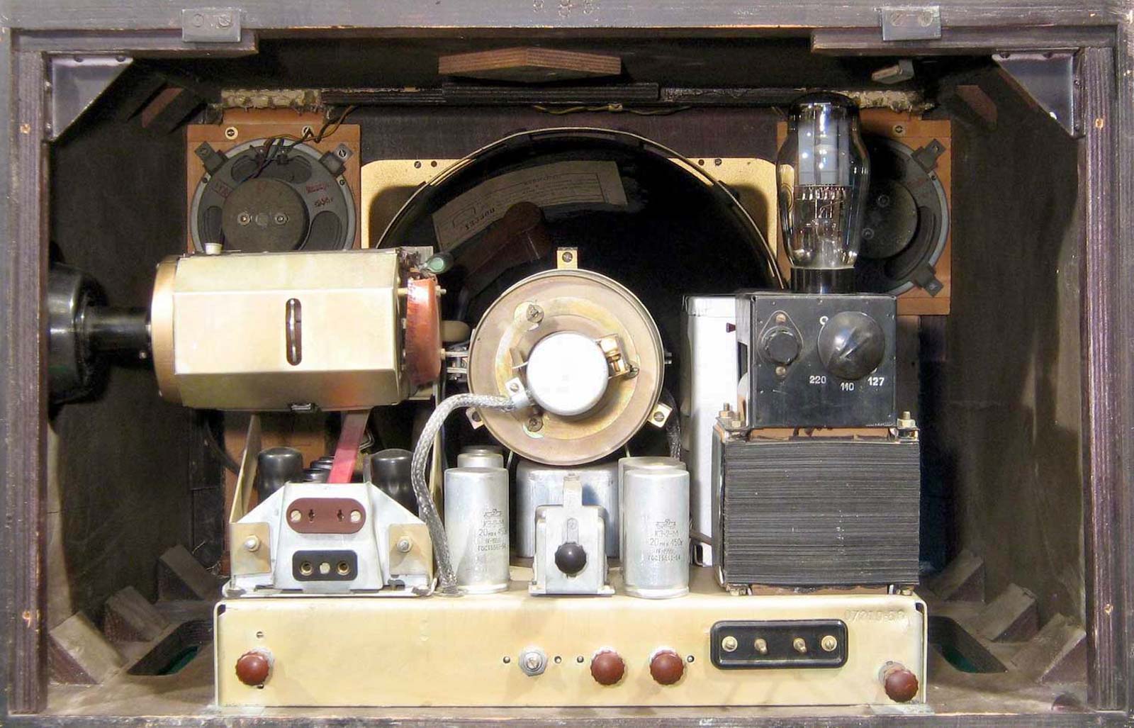 Телевизор *Авангард-55* с 1955 года выпускали Ленинградский завод им. Козицкого и Красноярский завод телевизоров. Телевизор 3 класса **Авангард-55** создан на базе модели **Авангард**. Перевод со 2 в 3 класс связан с более высокими требованиями к качеству телевизионного изображения и звукового сопровождения. Классов у телевизоров ещё официально не было, но при разработке они предусматривались хотя в инструкциях и не указывались. Телевизор предназначен для приёма в одном из 5 каналов, для приёма ЧМ станций в трёх поддиапазонах и воспроизведения грамзаписи с внешнего ЭПУ. Оформлен телевизор в деревянном полированном ящике размером 545х585х400 мм. Вес ТВ 45 кг. Питание от сети переменного тока. Потребляемая мощность при приёме ТВ 220 Вт, радио 120 Вт. Чувствительность 500 мкВ. Выходная мощность 1 Вт. Диапазон звуковых частот 100...5000 Гц. На передней панели расположена рамка окаймляющая экран, по сторонам которой под матерчатой драпировкой укреплены два громкоговорителя. Спереди под экраном расположены основные ручки управления. Справа на боковой стенке установлены две ручки, переключения программ и настройки гетеродина. Сзади на шасси стоят дополнительные регуляторы; переключатель сети, предохранитель, гнёзда для адаптера и антенны к которому через согласующее устройство подключаются внутренняя и наружная антенны. До 1957 года завод одновременно выпускал и трёхканальный телевизор *Авангард* в оформлении модели *Авангард-55*.