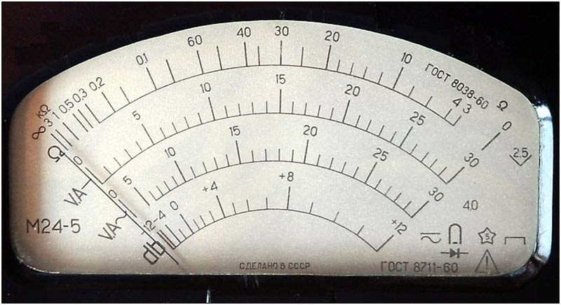 Ампервольтомметры *АВО-5М* и *АВО-5М1* соответственно с 1955 и с 1957 года выпускал Омский завод *Электроприбор*. Ампервольтомметр типа **АВО-5М** представляет собой многопредельный электроизмерительный прибор, используемый для измерения напряжения и величины переменного и постоянного тока а также и измерения сопротивлений до 30 Мегом. Многопредельный переносный ампервольтомметр магнитоэлектрической системы типа **АВО-5М1** предназначен для измерения силы тока и напряжения в цепях постоянного и переменного токов а также измерения сопротивления постоянному току. Прибор применяется при температуре окружающей среды от -10°С до +50 °С и относительной влажности воздуха 30...80%. Прибор имеет пределы измерения: Сила постоянного тока 60 мка, 300 мка, 3 ма, 30 ма, 120 ма, 1,2 а, 12 а. Напряжение постоянного тока З в, 12 в, 30 в, 300 в, 600 в, 1200 в, 6000 в. Сила переменного тока: 3 ма, 30 ма, 120 ма, 1,2 а, 12 а. Напряжение переменного тока 3, 12, 30, 300, 600, 1200, 6000 в. Прибор имеет сопротивление постоянному току: 3...300 ом, 0,3...30 ком, 0,03...3 Мгом. Прибор работает при децибелах сигнала от -12 до +78 дб. На больших пределах измерения применяются делителями напряжения. Входное сопротивление прибора 20 ком/в для всех пределов измерений постоянного напряжения и 2 ком/в для пределов переменного напряжения. Делители входят в комплект прибора.