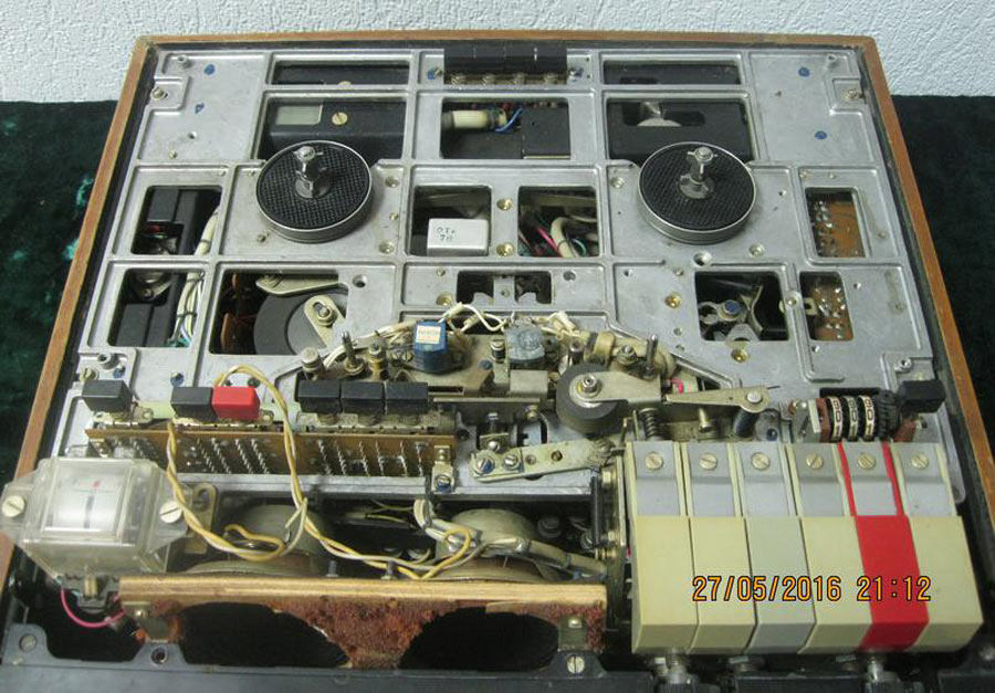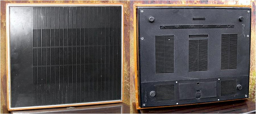 Стереофонический катушечный магнитофон *Аврора-стерео* с 1970 года выпускало Ленинградское НПО *Аврора*. Первый отечественный стереофонический транзисторный четырёхдорожечный катушечный магнитофон 2 класса **Аврора-стерео** (разработка 1967...1969 годов) выпускали небольшой серией с 1970 года, затем магнитофон был модернизирован и с 1971 года производился под наименованием *Аврора-201-стерео*. Внешний вид остался прежним, только регулятор стереобаланса был выведен третьей ручкой посередине, а в схеме скорректированы некоторые номиналы элементов. Магнитофон предназначен для записи или воспроизведения фонограмм от любого источника сигнала. Рассчитан на четырёхдорожечную запись в моно и стереофоническом режиме. Скорости движения ленты 19,06, 9,53 и 4,76 см/сек. Длительность записи и воспроизведения с катушками №15 с магнитной лентой типа 10 в стереорежиме на большей скорости 2х30 мин, на средней 2х60 мин, на меньшей 2х120 мин. В моно режиме время записи увеличивается в два раза. Номинальная выходная мощность 2 Вт, полоса рабочих частот звука 40...16000 Гц на скорости 19,06 см/сек, 63...12500 Гц на 9,53 см/сек и 63...6300 Гц на 4,76 см/сек. Относительный уровень помех в сквозном канале -40 дБ. Предусмотрена автоматическая и ручная регулировки уровня записи, регуляторы тембра НЧ и ВЧ, регулятор стереобаланса, счётчик расхода ленты, автостоп, срабатывающий в конце рулона, клавиша трюк, позволяющая накладывать новую запись на имевшуюся. Питание от сети. Потребляемая мощность 35 Вт. Размеры модели 336х378х130 мм, вес 10 кг. В каждой АС установлено по два громкоговорителя 2ГД-22. Размер АС 325х378х100 мм, масса 6,5 кг.