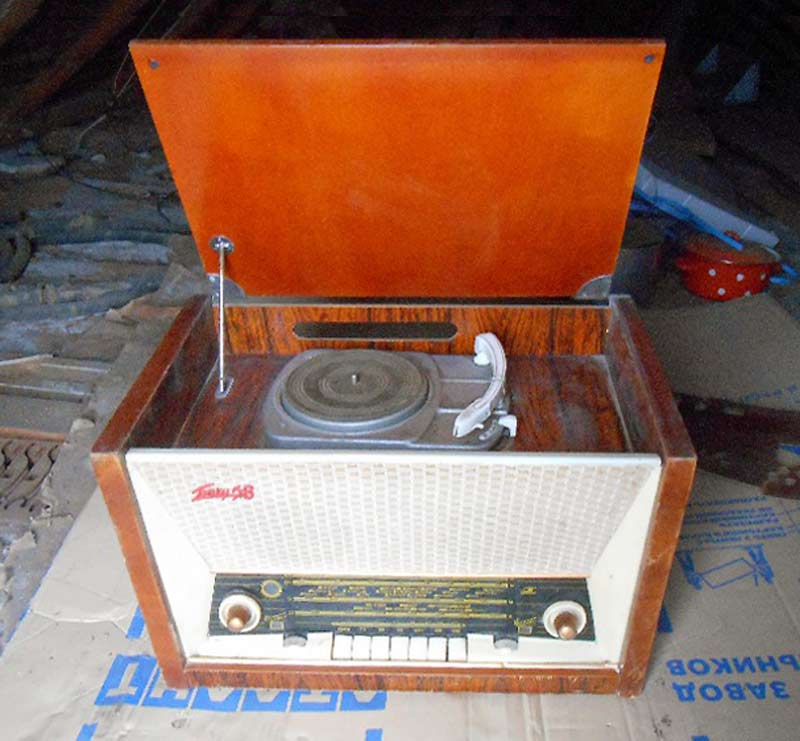 Радиолы сетевые ламповые *Баку-58* и *Баку-58М* с 1958 и 1961 года выпускалась на Бакинскои радиозаводе. Радиола *Баку-58* представляет собой 7 ламповый комбинированный АМ-ЧМ супергетеродин с универсальным ЭПУ. Она предназначена для приёма радиостанций и проигрывания грампластинок. Модель имеет УКВ диполь, переключатель диапазонов клавишного типа, оптический индикатор настройки, автоматическую регулировку усиления, раздельную регулировку тембра по НЧ и ВЧ, регулировку полосы пропускания ПЧ и широкополосную АС. При приёме ЧМ радиола позволяет получить высокое качество звучания. АС состоит из четырёх громкоговорителей: двух широкополосных 2ГДЗ и двух высокочастотных 1ГД9 расположенных на боковых стенках футляра. ЭПУ типа ЭПУ-1П имеет электродвигатель асинхронного типа с двухскоростным приводом, с полуавтоматическим включением и автоматическим выключением, пьезоэлектрический звукосниматель. Питание радиолы осуществляется от сети переменного тока с напряжением 110, 127 или 220 в. Радиола оформлена в футляре отделанном ценными породами дерева. Шкала имеет градуировку в метрах. На ДВ, СВ диапазонах на шкале нанесены названия городов с мощными станциями. Применены лампы: 6НЗП УВЧ, преобразователь и гетеродин УКВ диапазона, 6И1П УПЧ УКВ диапазона, гетеродин и преобразователь на диапазонах АМ. 6К4П УПЧ АМ сигналов. 6Х2П детектор AM, ЧМ сигналов. 6Н2H предусилитель НЧ. 6П14П оконечный УНЧ. 6Е5С индикатор настройки. В радиоле имеются гнёзда наружной антенны и заземления, наружной (или внутренней) УКВ антенны, внешнего громкоговорителя и звукоснимателя. Диапазоны: ДВ, СВ, KB-2 - 3,9...7,6 мГц. КВ-1 - 8,2...12,4 мГц. УКВ - 64...73 мГц. ПЧ: по AM тракту 465 кГц, ЧМ 8,4 мГц. Чувствительность в: АМ 200 мкВ, ЧМ 20 мкВ. Избирательность в АМ 30 дБ, ЧМ 26 дБ. Номинальная выходная мощность 2 Вт. При приёме полоса частот: в АМ 100...4000 гц, ЧМ 100...7000 гц, при работе ЭПУ 100...5000 гц. Потребляемая мощность при приёме 60 Вт, при работе ЭПУ 75 Вт. Габариты радиолы 570х370х370 мм. Вес 22 кг. В 1961 году радиола **Баку-58** модернизирована в **Баку-58М**. Кроме изменений некоторых номиналов в схеме и внешнего вида, других изменений нет.