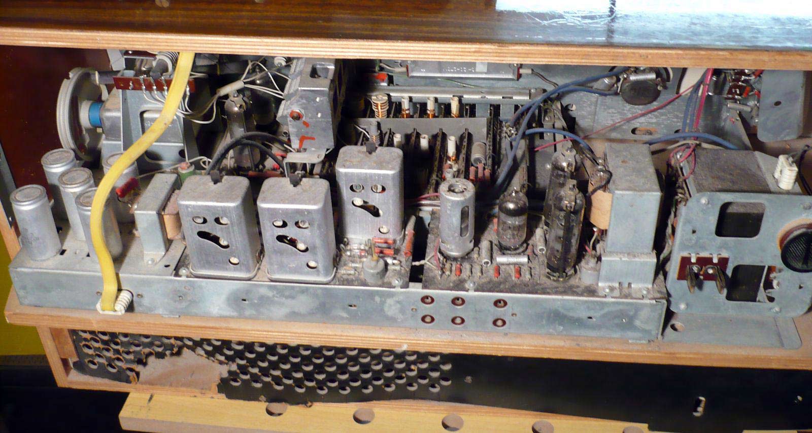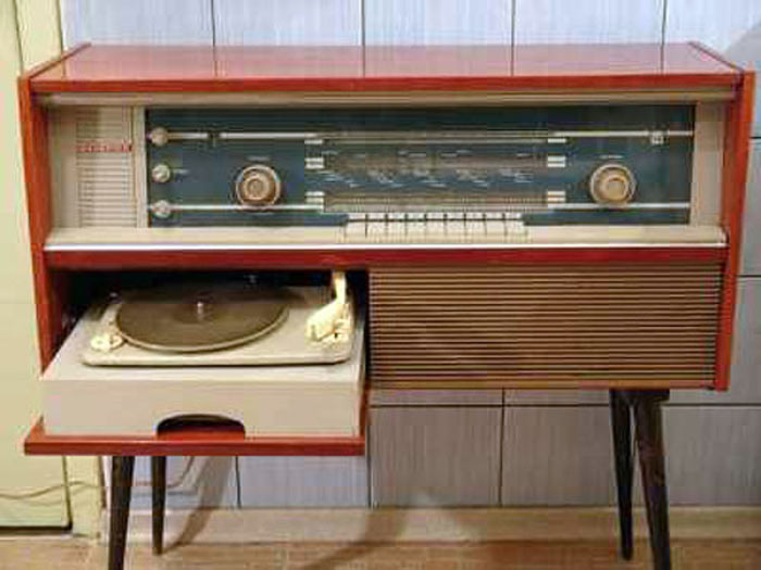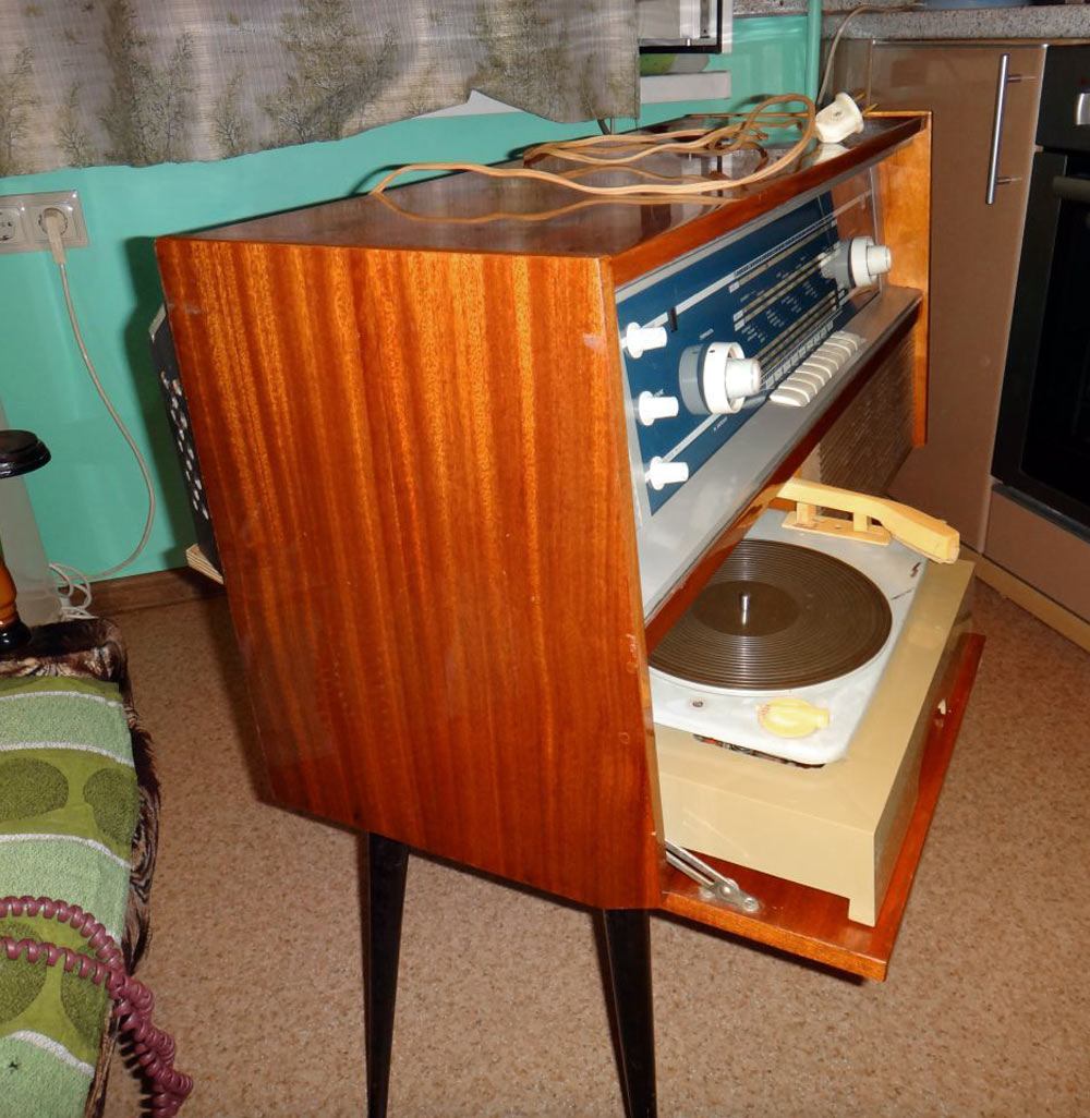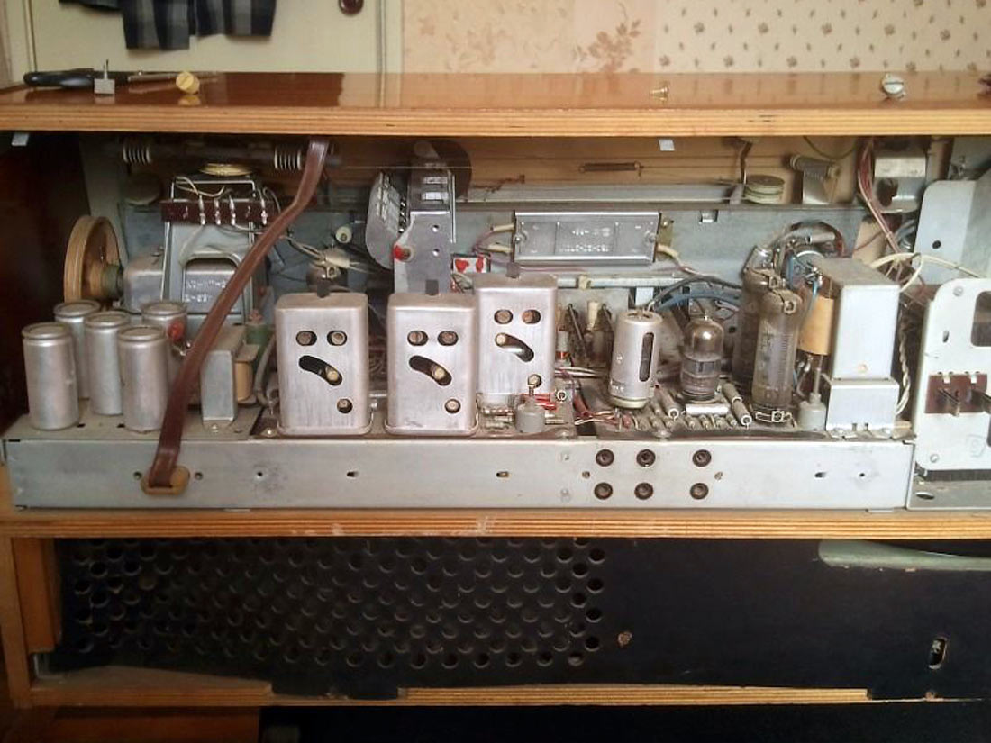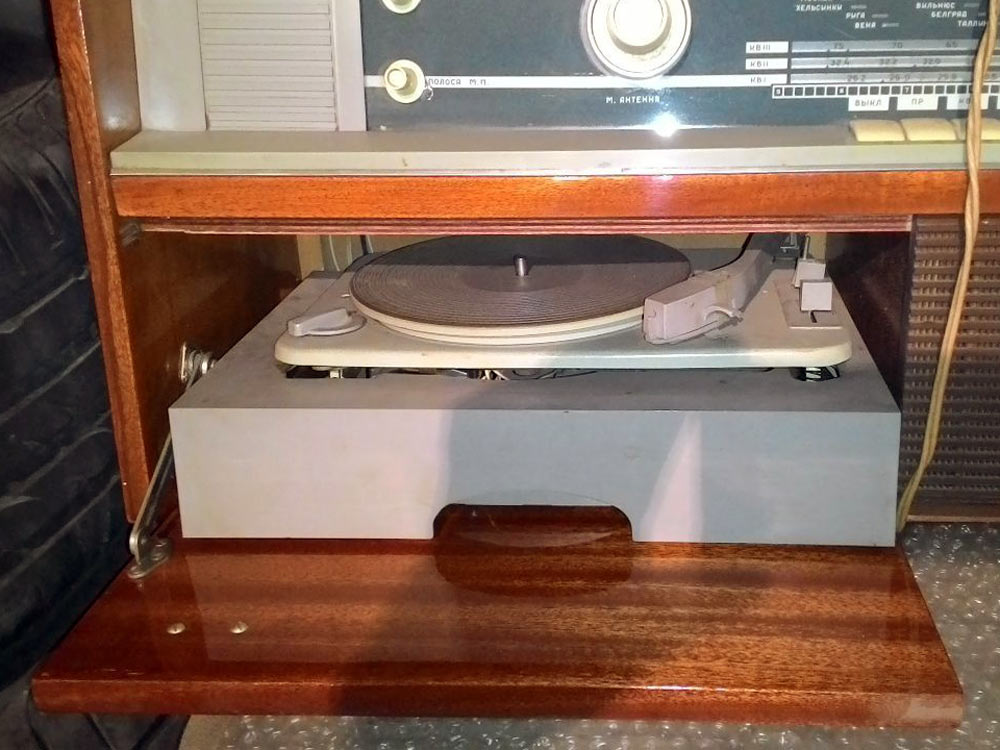 Радиола сетевая ламповая *Беларусь-103Л* с 1968 года выпускалась на Минском радиозаводе. Радиола состоит из десятилампового приёмника первого класса рассчитанного на приём радиостанций в диапазоне ДВ 150...408 кГц, СВ 525...1605 кГц, КВ3 3,95...7,6 Мгц, KB2 9,3...9,8 Мгц, KB1 11,6...12,1 Мгц и УКВ 65,8...73 Мгц и трёхскоростного II-ЭПУ-15А, с автовыключателем и микролифтом. Чувствительность с внешней антенной в ДВ, СВ, КВ диапазонах 50 мкВ, в диапазоне УКВ-ЧМ 8 мкВ. Чувствительность с магнитной антенной в ДВ,СВ диапазонах 500 мкВ/м, в положении *местный приём* 0,7 мВ. Промежуточная частота тракта AM - 465 кГц а тракта ЧМ - 6,5 Мгц. Избирательность по соседнему каналу при расстройке на 10 кГц - 60 дБ. В ЧМ усредненная крутизна скатов резонансной характеристики 0,25 дб/кгц. Ширина полосы пропускания по ПЧ в АМ тракте в положении *узкая полоса* 4 кгц, *широкая полоса* 11 кгц, *местный приём* 14 кгц, в тракте ЧМ полоса пропускания 160 кГц. Система АРУ радиолы обеспечивает изменение сигнала на выходе на 10 дБ, при изменении сигнала входа на 60 дБ. Номинальная выходная мощность усилителя - 4 Вт, максимальная - 7 Вт, диапазон воспроизводимых частот 80...12500 Гц. Пределы регулировки тембра 12 дБ. Чувствительность усилителя с гнёзд магнитофона при номинальной выходной мощности 150 мВ, уровень фона -54 дБ. Акустическая система радиолы состоит из 3 громкоговорителей 2ГД-19. Питается радиола от сети переменного тока. Потребляемая от сети мощность 100 Вт. Размеры радиолы 790х380х355 мм, её масса 27 кг.