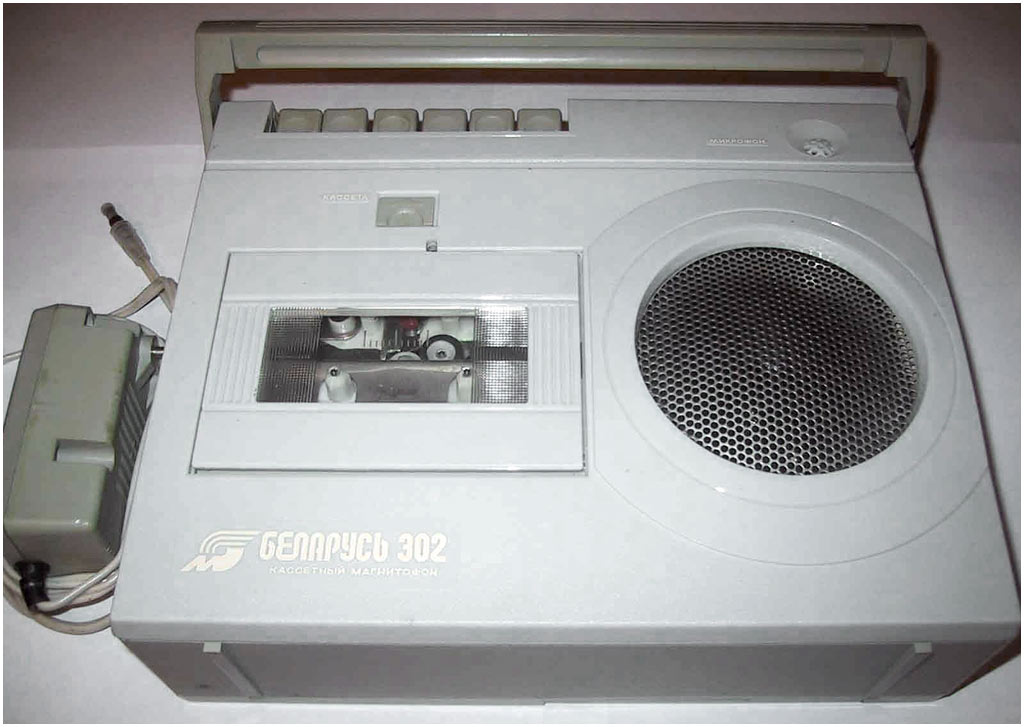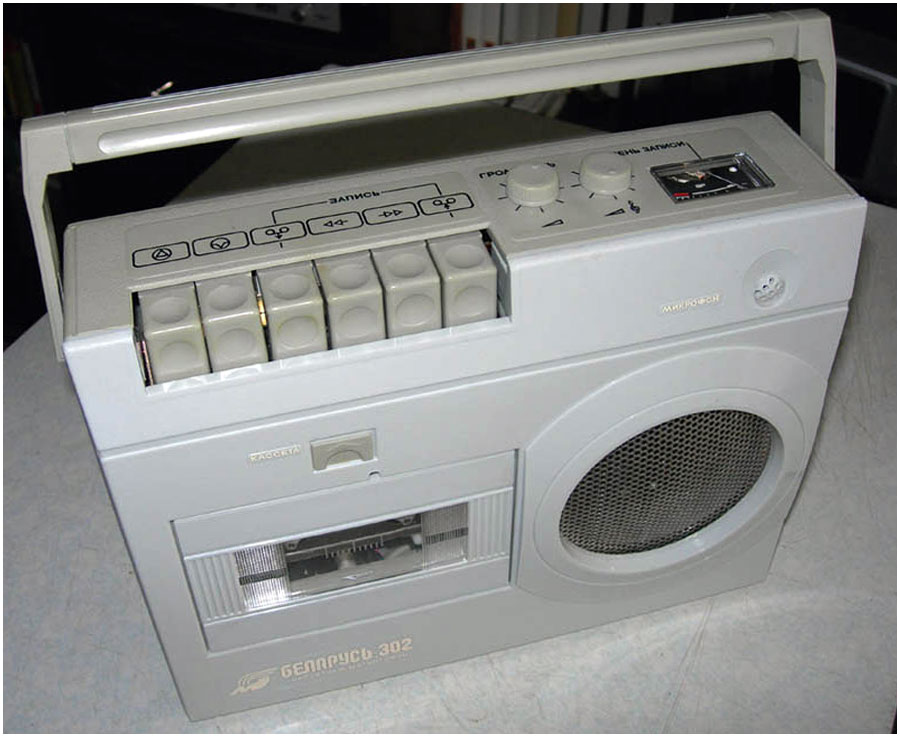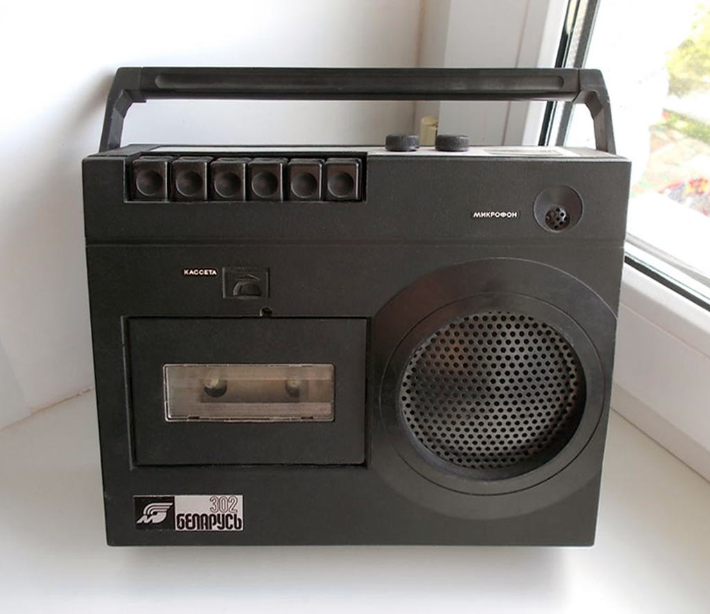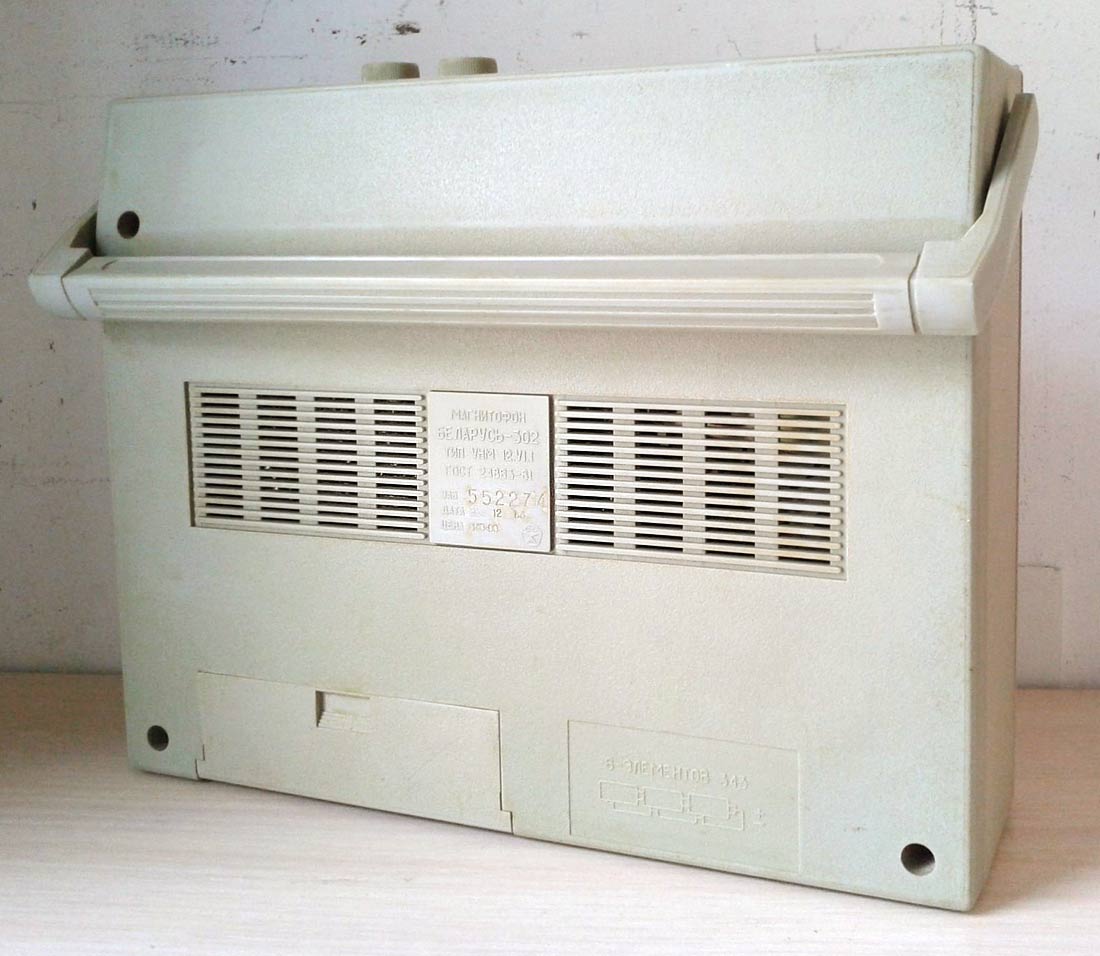 Портативный кассетный магнитофон *Беларусь-302* с начала 1988 года выпускал Могилёвский завод *Зенит*. Магнитофон 3-й группы сложности **Беларусь-302** имеет автоматическую и ручную регулировку уровня записи, стрелочный индикатор уровня записи, электретный микрофон, автостоп. Диапазон частот звука при записи и воспроизведения на ЛВ - 63...12500 Гц, воспроизводимых громкоговорителем - 120...10000 Гц. Номинальная выходная мощность 1 Вт. Питание от сети или от 6 элементов А-343. Габариты МГ - 260х267х85 мм. Масса 2,1 кг. В некоторых выпусках магнитофонов клавиши управления нажимались в двух плоскостях.