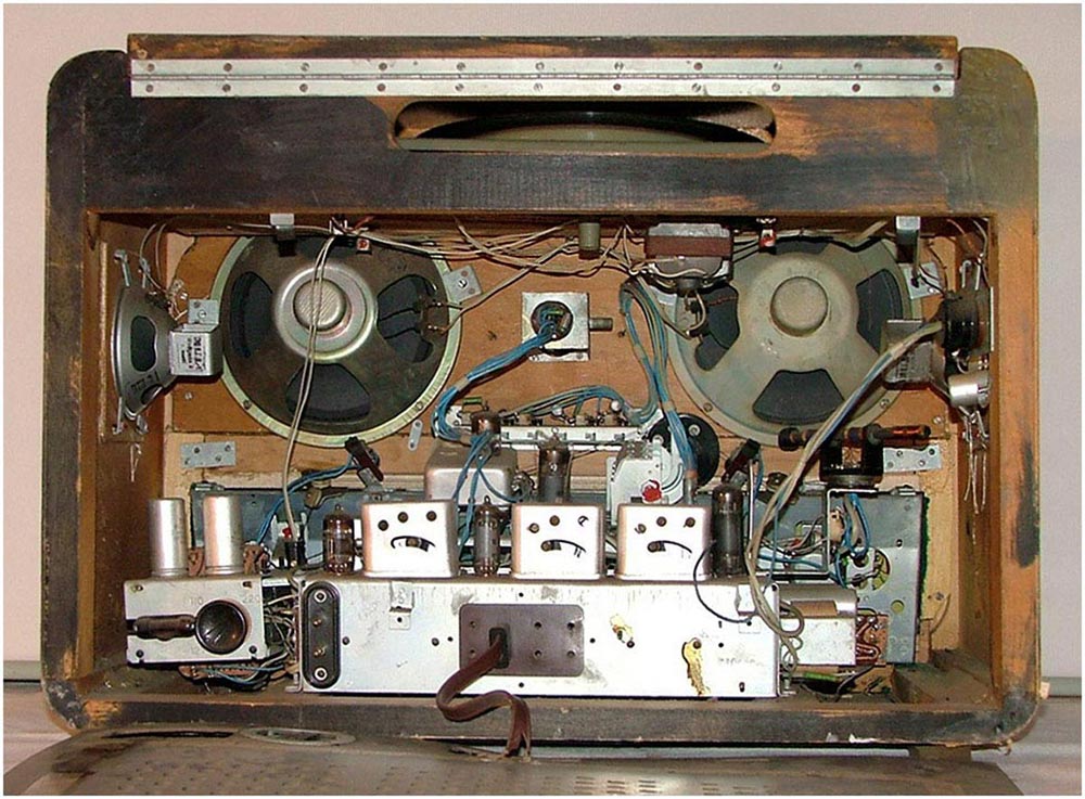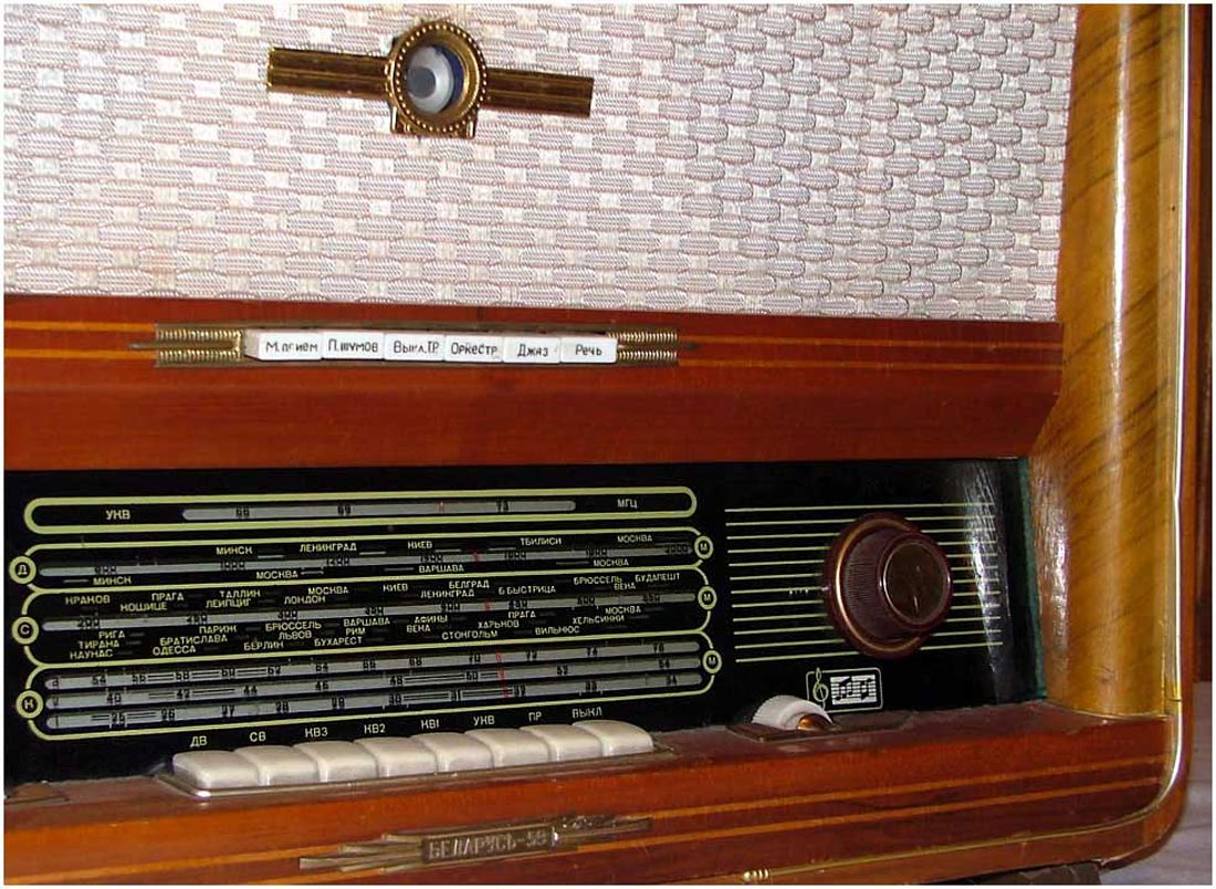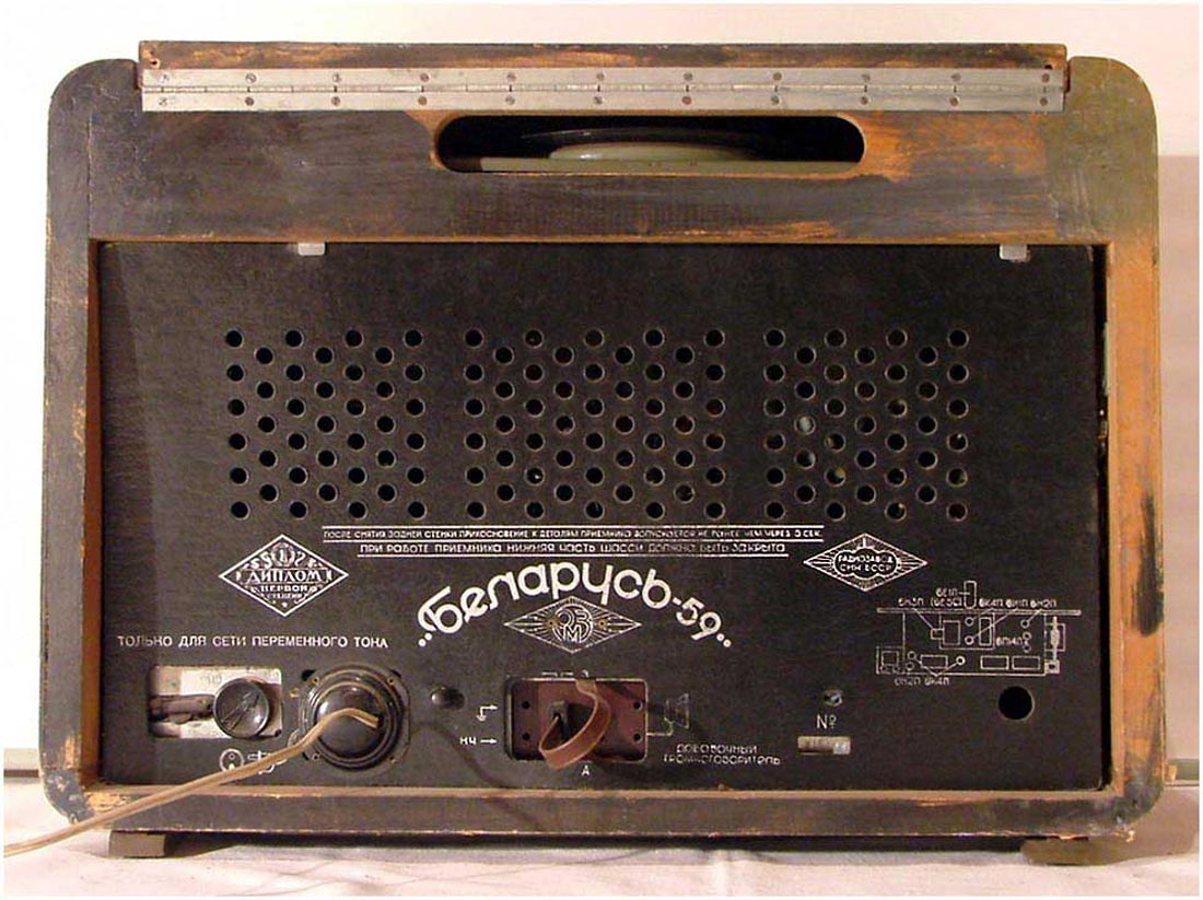 Радиола *Беларусь-59* с начала 1959 года выпускалась Минским радиозаводом. Радиола имеет 10-ти ламповый приёмник и универсальное ЭПУ. Диапазон частот: ДВ 150...415 кГц, СВ 520...1600 кГц, КВ-1 8,82...12,1 МГц, КВ-2 5,56...7,5 МГц, КВ-3 3,95...5,56 МГц, УКВ 64,5...73 МГц. ПЧ диапазона УКВ - 8,4 МГц, для остальных диапазонов 465 кГц. Чувствительность на УКВ-ЧМ 10 мкВ, для остальных диапазонов 50 мкВ. Избирательность по соседнему каналу в диапазоне УКВ-ЧМ 40 дБ, в остальных диапазонах 60 дБ. Полоса воспроизводимых звуковых частот в УКВ-ЧМ диапазоне и при работе ЭПУ - 80...12000 Гц, в АМ диапазонах 80...4000 Гц. Номинальная выходная номинальная мощность 4 Вт. Потребляемая мощность 80 Вт. АС радиолы состоит из двух широкополосных и двух ВЧ громкоговорителей. Размеры радиолы 645х440х340 мм. Масса 25 кг.
