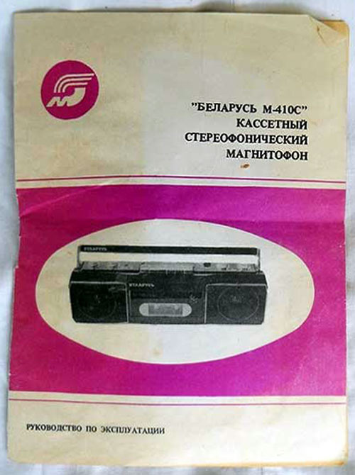 Стереофонический магнитофон *Беларусь М-410С* с 1988 года выпускал Могилёвский завод *Зенит*. Магнитофон предназначен для записи и воспроизведения фонограмм на магнитной ленте в кассетах МК. Питание осуществляется от электрической сети через внешний блок питания или от 6 элементов А-373. Скорость протяжки магнитной ленты 4,76 см/сек. Коэффициент детонации ±0,35%. Диапазон рабочих частот на ЛВ - 63...12500 Гц. Относительный уровень помех в канале З/В -44 дБ. Коэффициент гармоник в канале З/В на ЛВ - 3,5%. Номинальная выходная мощность 2х1 Вт. Габариты магнитофона - 421x135x106 мм. Масса - 2,1 кг.