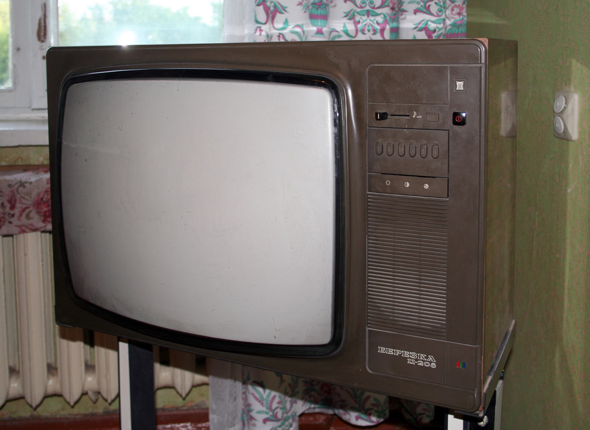 Телевизор цветного изображения *Берёзка Ц-208* (УПИМЦТ-М-61-С-1) с 1987 года выпускало Харьковское ПО *Коммунар*. Телевизор работает в диапазонах МВ, ДМВ. Кинескоп 61ЛК4Ц с углом отклонения лучей в 90° и блоком сведения. Есть сенсорное устройство для выбора программ со световой индикацией выбранной программы, гнёзда для подключения магнитофона, головных телефонов. Корпус облицован плёнкой или шпоном с лаковым покрытием. Потребляемая мощность 145 Вт. Габариты модели - 515x747x550 мм. Вес 43 кг.