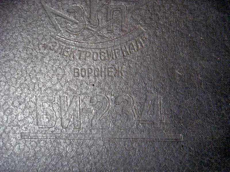 Радиоприёмник батарейный *БИ-234* (колхозный) с 1934 года выпускал Московский завод имени Орджоникидзе. С 1936 года производство приёмника передано на Воронежский завод **Электросигнал**. **БИ-234** - расшифровывается как Батарейный, Индивидуального пользования, 2-х ламповый, 3-х контурный, модель 1934 года. Приёмник предназначен для работы в сельской местности, отчего часто назывался **колхозным**. По схеме - это резонансный приёмник с обратной связью типа 1-V-1. Приёмник рассчитан на работу с элекромагнитным громкоговорителем типа **Рекорд**. Выходная мощность 0,1 Вт. Диапазон принимаемых волн 200...2000 м. В случае приёма мощной местной станции предусмотрена возможность отключения первой ступени и работа на 2-х остальных. Приёмник оформлен в деревянном ящике оклеенном дерматином, имеет съёмную заднюю стенку. Монтаж выполнен на штампованном шасси, вставленном в ящик. Четыре ручки управления выведены на переднюю панель, это настройка с коррекцией, регулятор громкости, регулировка обратной связи, переключатель диапазонов. Выключатель накала объединён на одной оси с регулятором громкости. На заднюю стенку шасси выведены гнёзда антенны, заземления, громкоговорителя, реостат накала, гнёзда для переключения с трёх каскадов на два и шланг питания, оканчивающийся деревянными колодками с клеммами, для присоединения батарей. В приёмнике применены лампы: СБ-154, УБ-152 и СБ-155. Для накала нужна батарея на 2 В, при этом ток потребления составляет 0,4 А, для анода 100 В при токе 8,5 мА. Диапазон разбит на 2 поддиапазона ДВ - 714...2000 м и СВ - 200...545 м. Чувствительность при включенной обратной связи ~ 500 мкВ, выключенной 30 мВ/м. Футляр деревянный, размером 350х280х180 мм. Вес приёмника 3,3 кг.