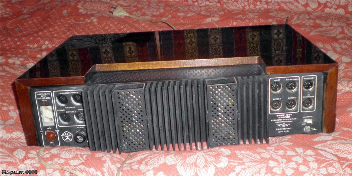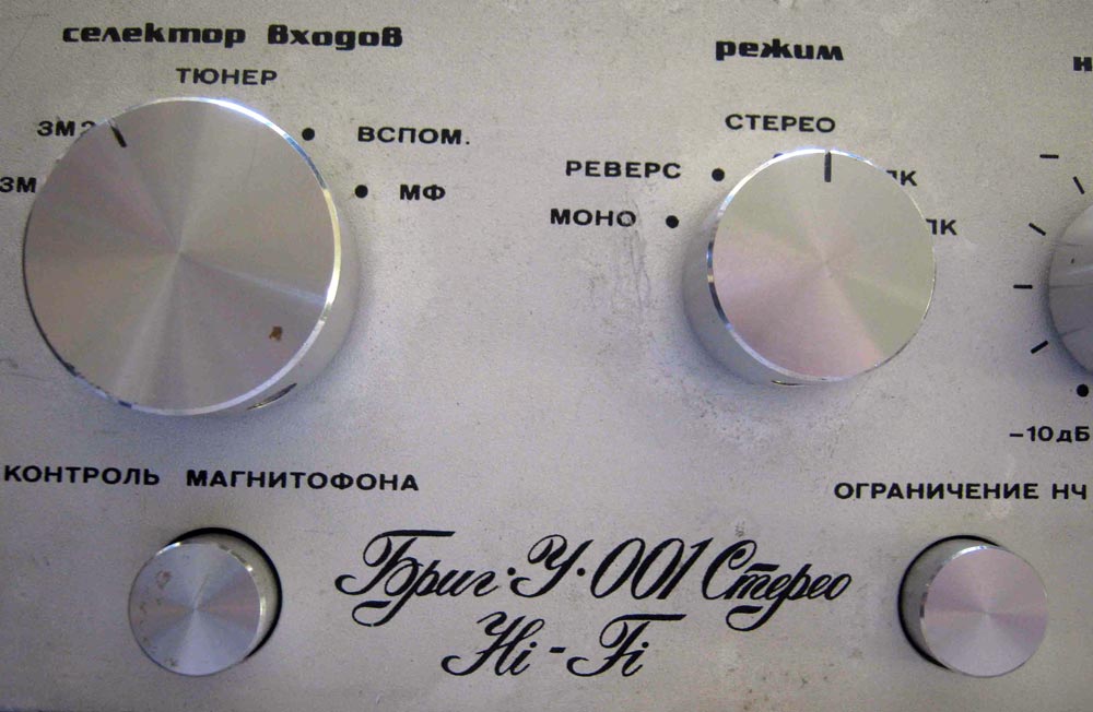 Усилительно коммутационное устройство *Бриг-001-стерео* с 1975 года выпускали Ленинградское объединение *Океанприбор* и Кировский завод *Ладога*. УКУ **Бриг-001-стерео**, позднее **Бриг У-001-стерео** предназначено для высококачественного усиления музыкальных и речевых программ с микрофона, магнитного или пьезоэлектрического звукоснимателя, тюнера, магнитофона и других источников сигналов. В УКУ имеется ступенчатая регулировка громкости и тембра, возможность изменения АЧХ с помощью фильтров ВЧ и НЧ, имеется система мягкого включения, исключающая щелчки при включении или выключении, защита от КЗ в нагрузке, световая индикация сети, перегрузки каналов. К УКУ можно подключить четыре АС с сопротивлением от 4 до 8 Ом и стереотелефоны. УКУ имеет низкий уровень шума, малые искажения, линейность АЧХ. Номинальная выходная мощность на нагрузке 8 ом, 2х50 Вт. Диапазон рабочих частот 20...25.000 Гц. Коэффициент гармоник 0,1 %. КНИ - 0,15 %. Разделение каналов на частоте 1 кГц 50 дБ. Отношение сигнал/взвешенный шум 86 дБ. Потребляемая мощность 150 Вт. Габариты УКУ - 452х372х118 мм. Его масса 15 кг.