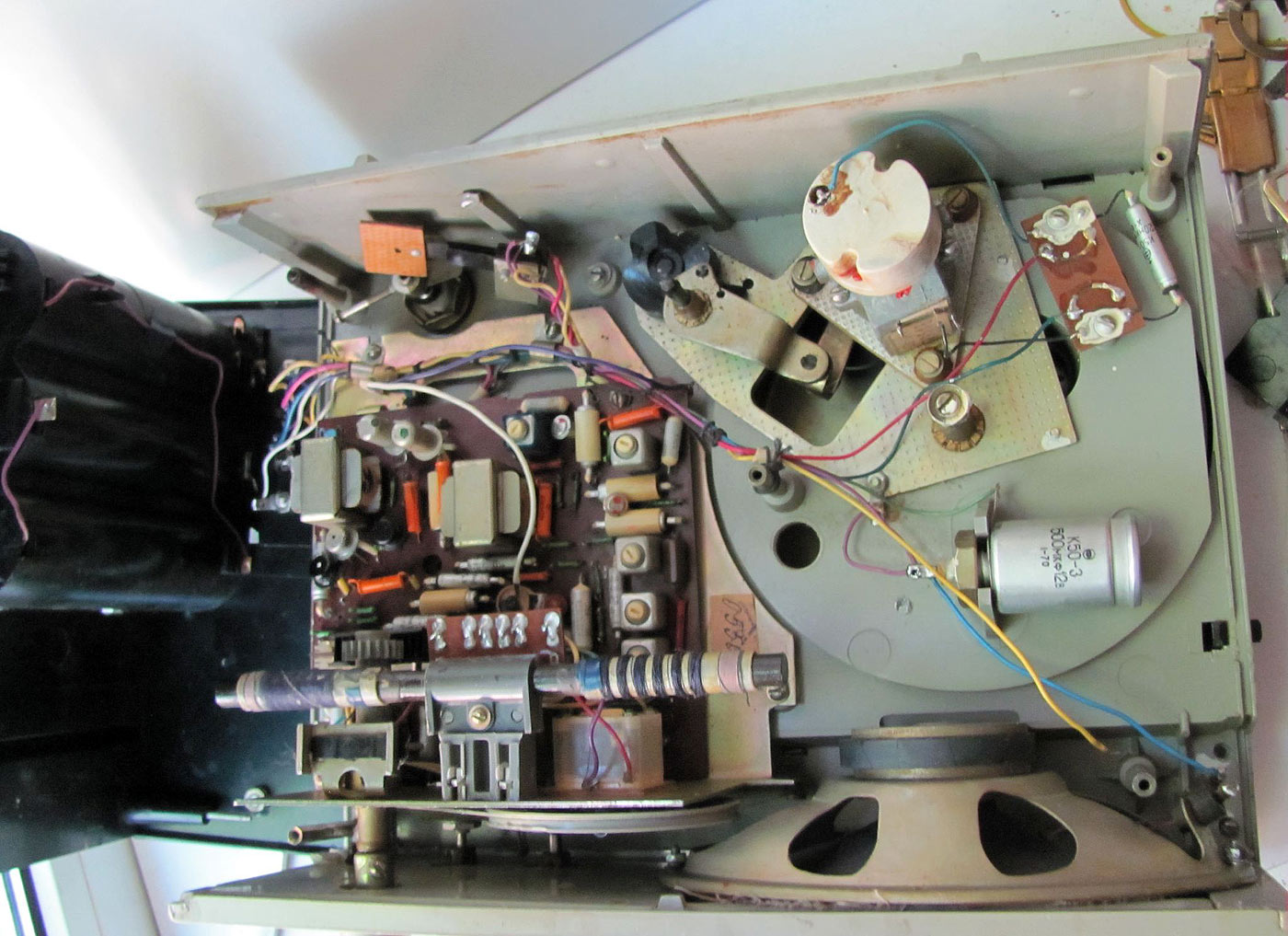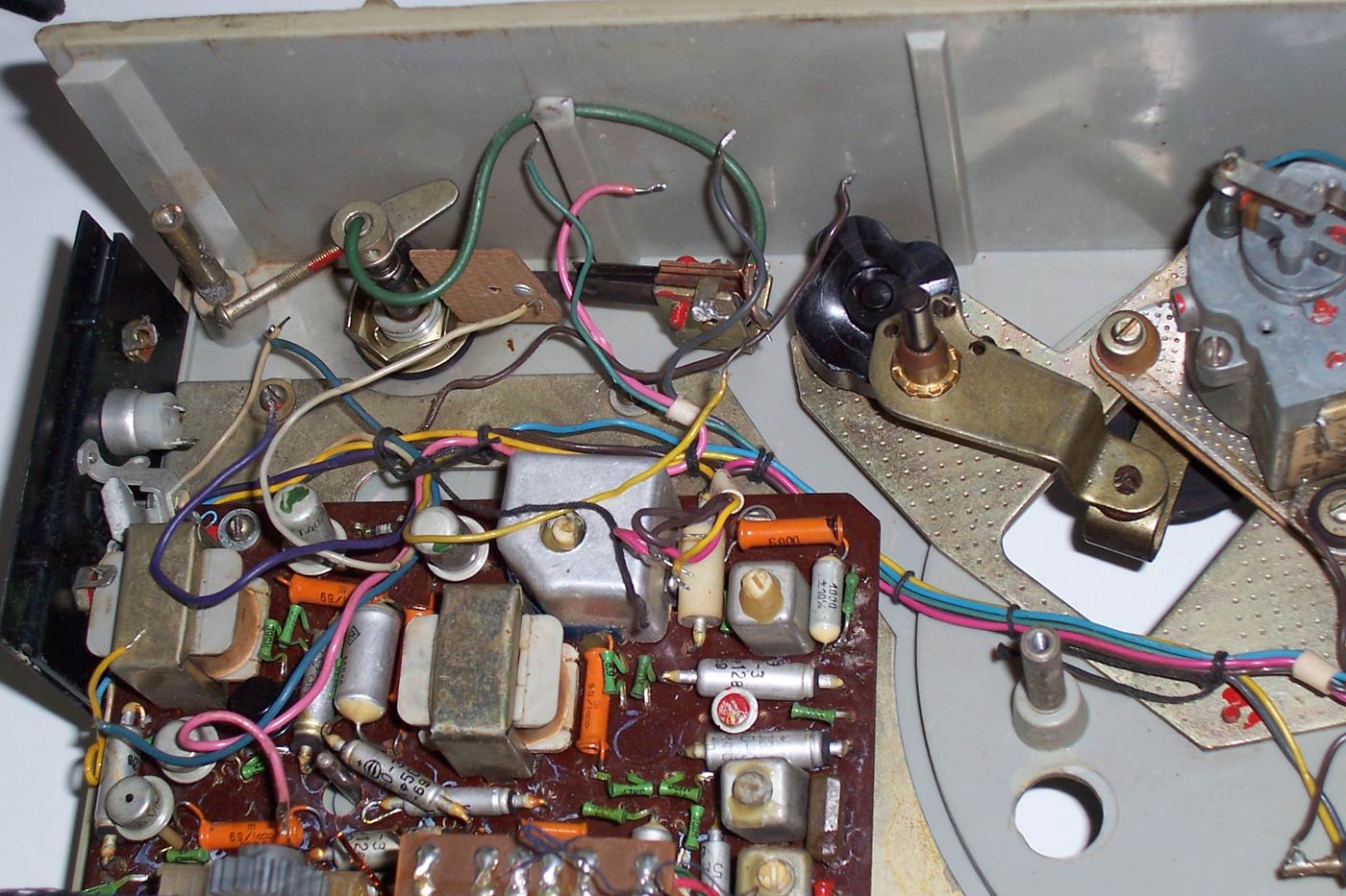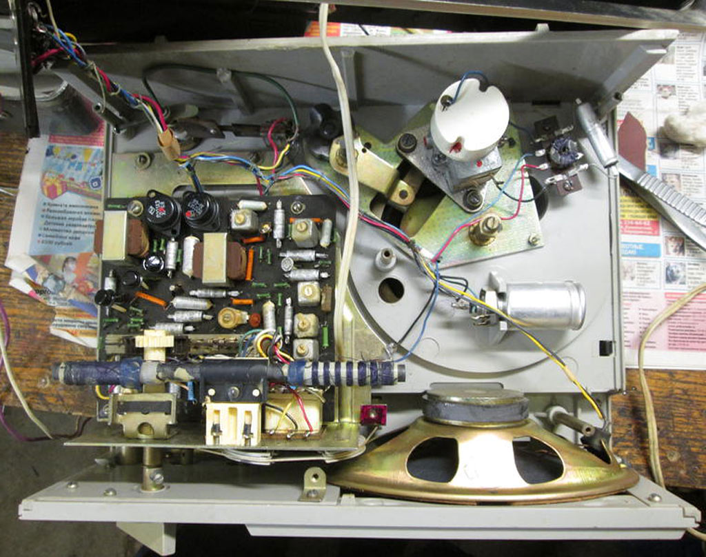 Портативная радиола *Бригантина* с 1969 года выпускалась Кыштымский радиозаводом. Радиола **Бригантина** - одна из немногих портативных транзисторных радиол выпущенных отечественной радиопромышленностью. Радиола предназначена для приёма радиовещательных станций в диапазонах длинных и средних волн на внутреннюю магнитную антенну и воспроизведения грампластинок на трёхскоростном ЭПУ. Радиола работает в автономном режиме от 6-ти батарей типа 373 и в стационарном, питаясь от сетевого выпрямителя. В 1970 году электрическая схема радиолы была модернизирована и в справочнике описан именно этот вариант. Чувствительность радиоприёмника радиолы в длинноволновом диапазоне не хуже 2,5 мВ/м, в средневолновом не хуже 1,5 мВ/м. Акустическая система радиолы состоит из одного громкоговорителя 1ГД-28. Полоса воспроизводимых звуковых частот при радиоприёме - 200...3500 Гц, а при воспроизведении грамзаписи - 200...7000 Гц. Номинальная выходная мощность усилителя - 0,5 Вт. Время работы радиолы от свежего комплекта батарей при ежедневном двухчасовом радиоприёме около 100 дней, при проигрывании грампластинок около 20 дней. В радиоле имеются гнёзда для подключения источника внешнего питания и головных телефонов. Габариты радиолы 310 х 230 х 122 мм, масса с батареями питания - 4,1 кг.