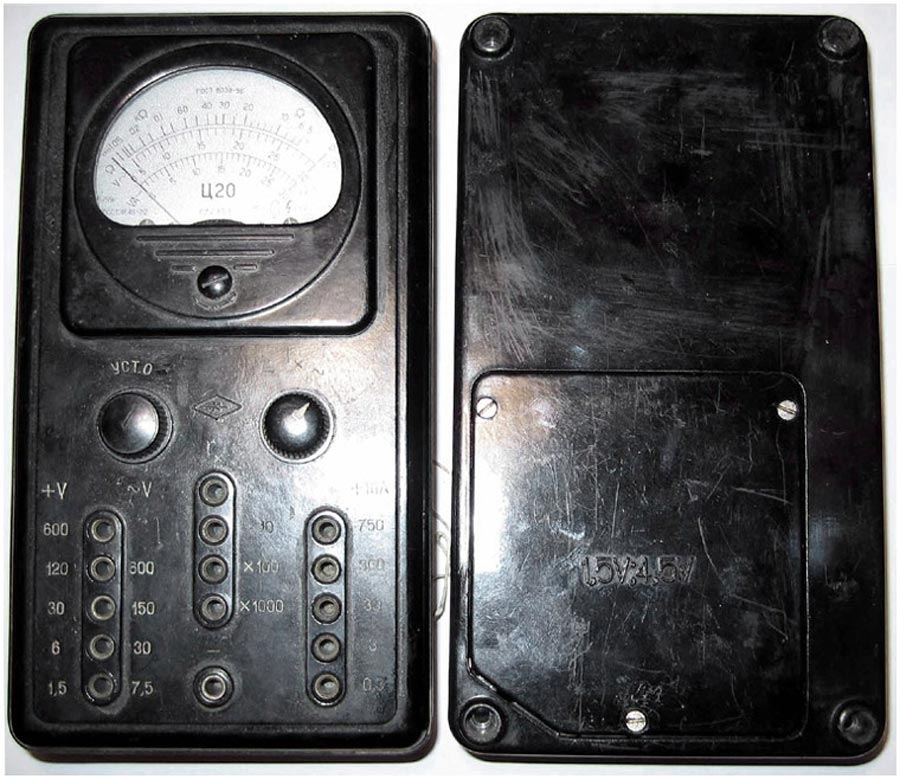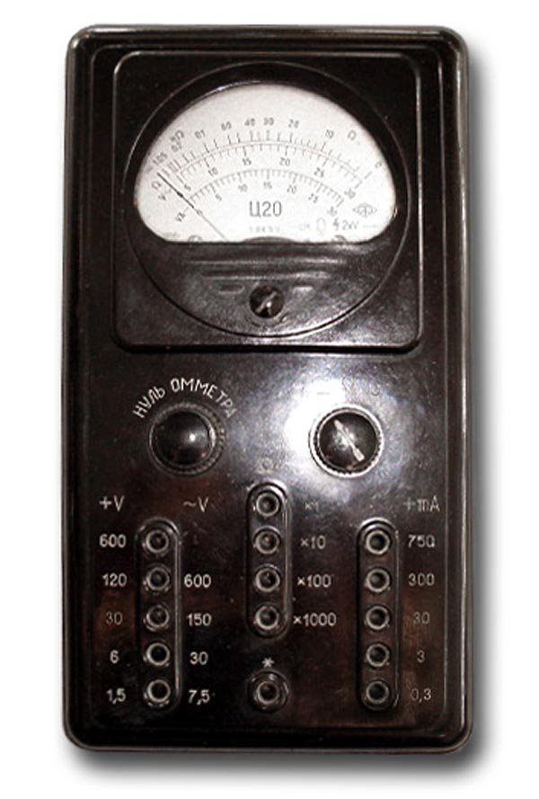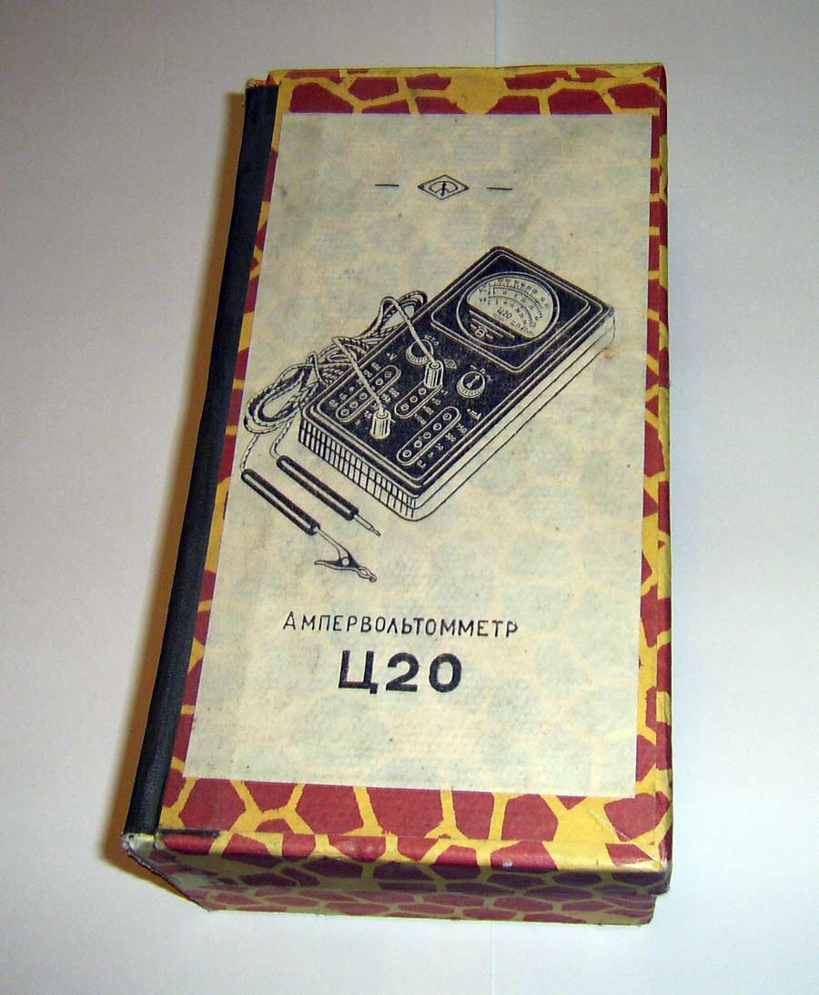 Ампервольтомметр *Ц-20* с начала 1955 года выпускал Омский завод *Электроточприбор*. Комбинированный прибор **Ц-20** предназначен для измерения величины постоянного и переменного напряжений, силы тока и сопротивлений. За более чем 30-ти летнее производство, прибор не претерпел существенных изменений за исключением замены его элементной базы на более современную, да чёрного футляра из карболита на пластмассовый с закруглёнными или острыми углами, в основном светлых оттенков. Выпускали прибор и другие заводы, отличавшиеся регуляторами управления, медными, никелированными или лужёными гнёздами. Цена прибора была постоянной 19 рублей. Исключением стал авометр *Ц-20* 1976 года выпуска, в наборе с паяльником, добавочными устройствами и припоем.
