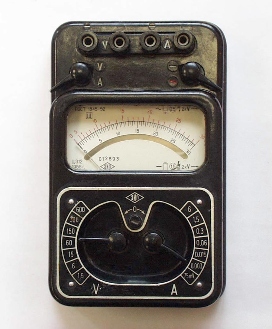 Вольтамперметр *Ц-312* с I-кв 1955 года выпускал Краснодарский завод измерительных приборов. Вольтамперметр **Ц-312** предназначен для измерения постояного и переменного напряжения и силы тока. Для каждого рода измерений в приборе имеется 6 пределов, которые переключаются отдельными позиционными движковыми переключателями. Переключение на измерение напряжения или тока, а также рода тока производится отдельно. Сзади вольтамперметра находится таблица данных.