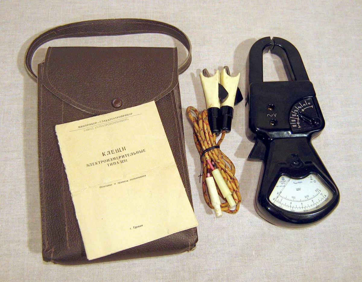 Клещи электроизмерительные *Ц-91* выпускались с 1972 года Ереванским заводом *Электроточприбор*. Клещи электроизмерительные предназначены для измерения тока и напряжения без разрыва цепи с частотой 50 ГЦ и напряжением до 650 В. Подробнее в инструкции.