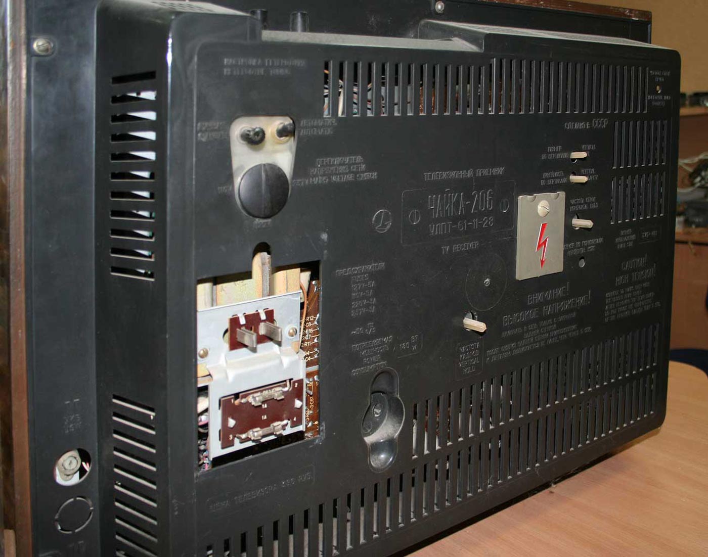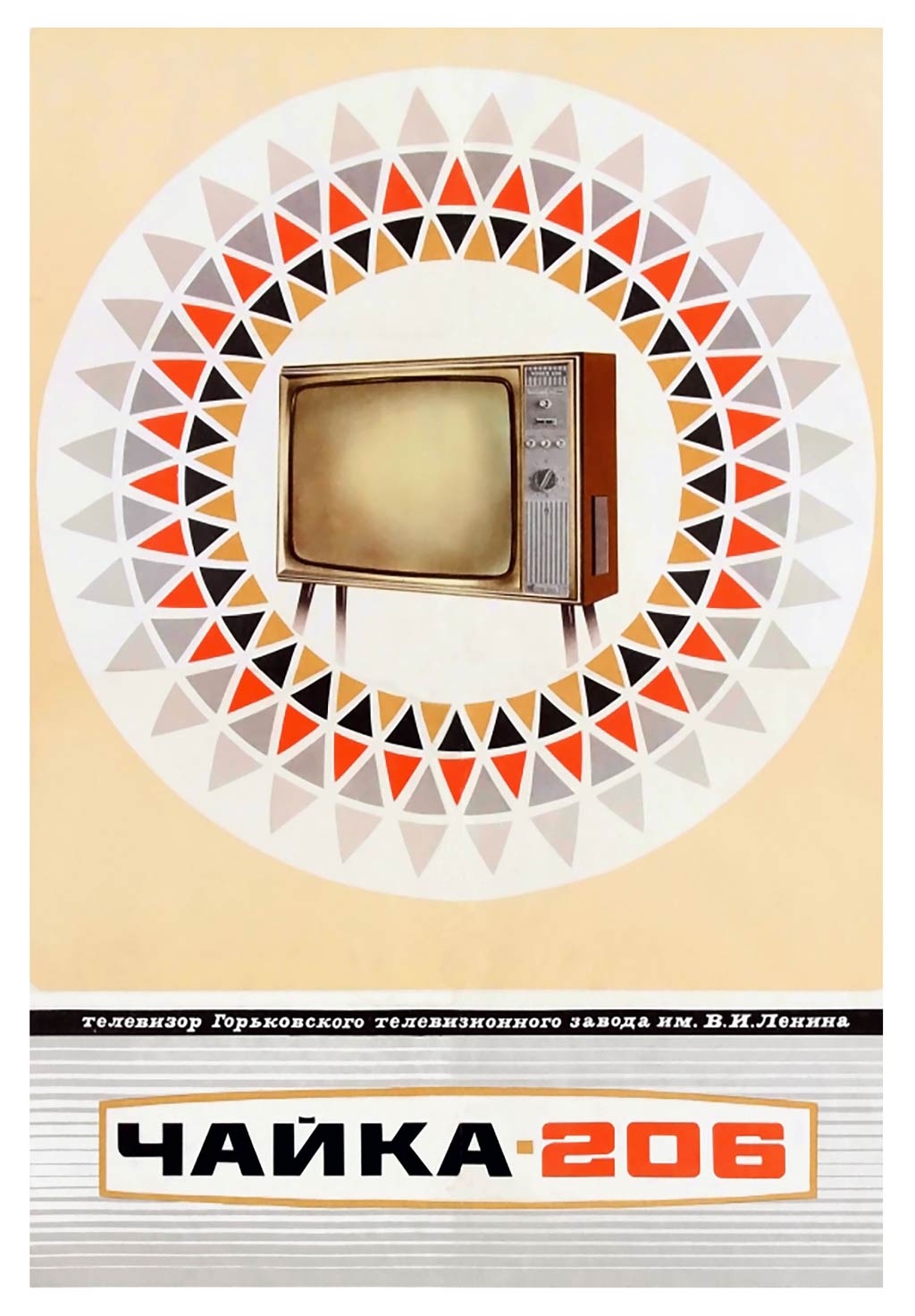 Телевизионный приёмник чёрно-белого изображения *Чайка-206* с 1972 года выпускал Горьковский телевизионный завод имени В.И.Ленина. Унифицированный ч/б телевизор **Чайка-206** выпускался в настольном и напольном вариантах. Футляр отделан деревом ценных пород, передняя панель пластмассой, а правая её часть выполнена решеткой, где расположен ВЧ громкоговоритель. Основной громкоговоритель установлен на левой стенке футляра и закрыт решёткой. Основные ручки для управления находятся справа: ручка настройки ДМВ, переключатель МВ-ДМВ, яркости, контрастности, громкости, ПТК, кнопки включения и выключения. Сзади телевизор закрыт стенкой с отверстиями. Телевизор работает на любом из 12 каналов МВ диапазона и в любом канале ДМВ при установке блока СКД-1. Имеется система АПЧГ для переключения программ без регулировок. АРУ обеспечивает устойчивость изображения. АПЧ и Ф сводит влияние помех до минимума. Имеется возможность записи звука на магнитофон, громкость и тембр при этом на запись не влияют. Кроме того телевизор обеспечивает прослушивание звука головными телефонами с отключенными громкоговорителях. С проводного ПДУ возможна регулировка громкости, яркости, а так же отключение громкоговорителей. Пульт ДУ не входит в комплект телевизора. Питание телевизора осуществляется от электрической сети переменного тока 127 или 220 вольт.