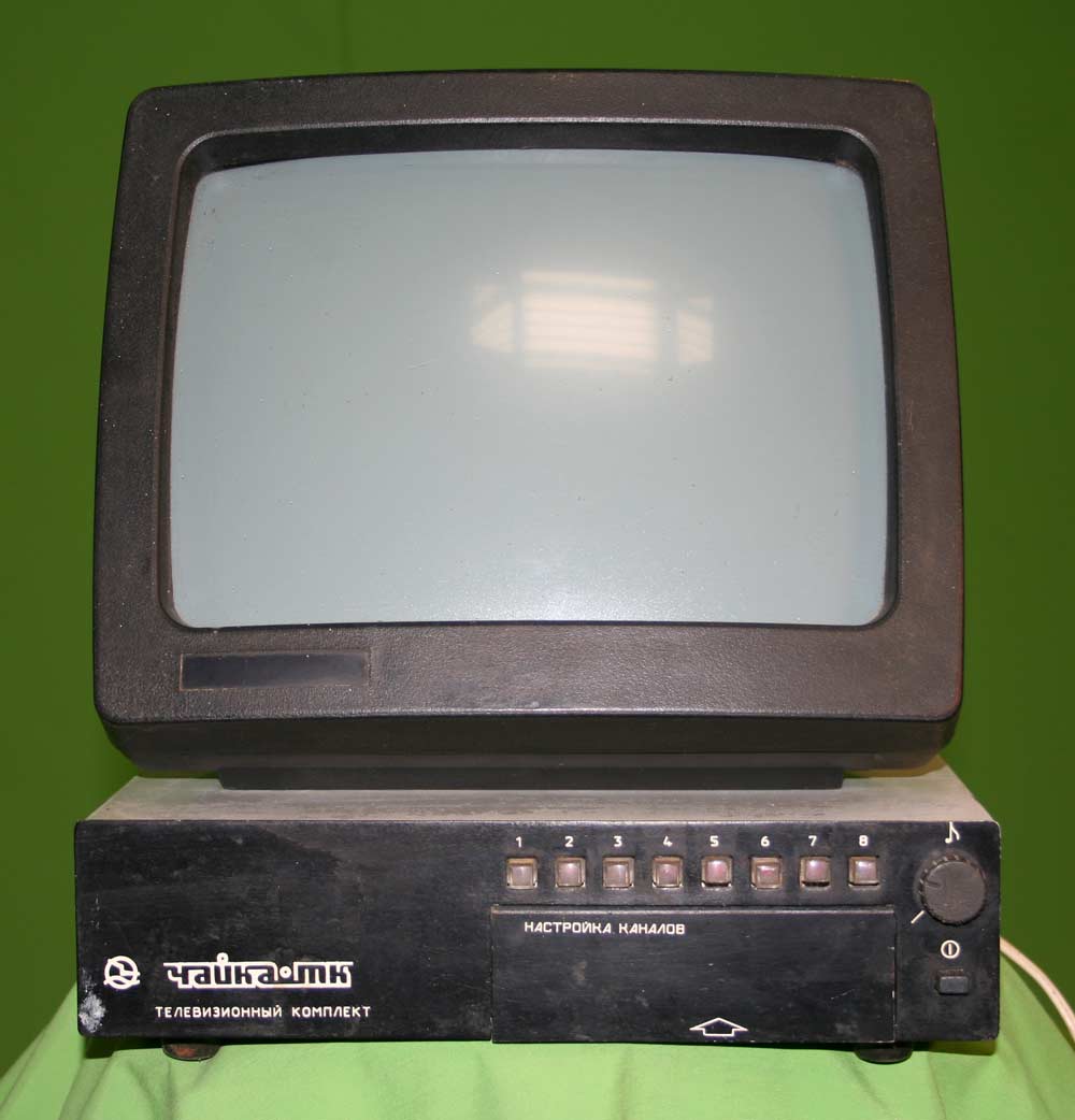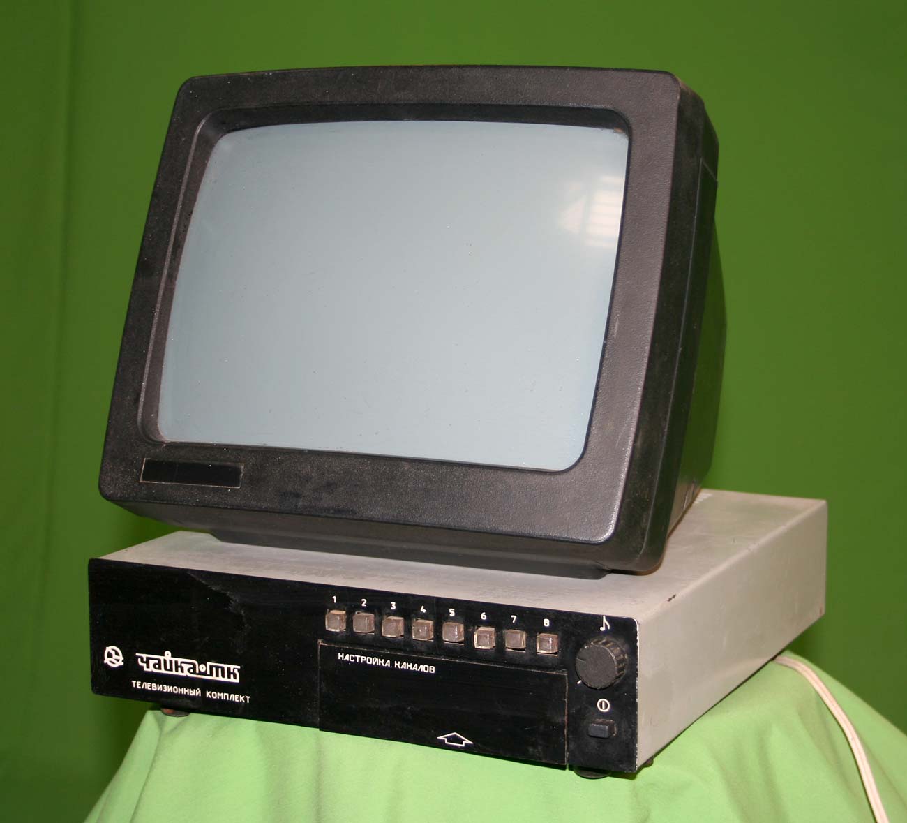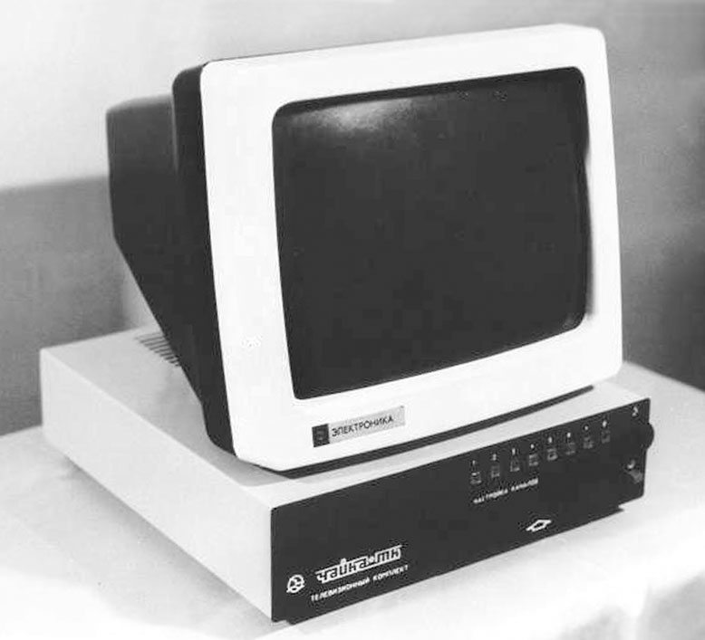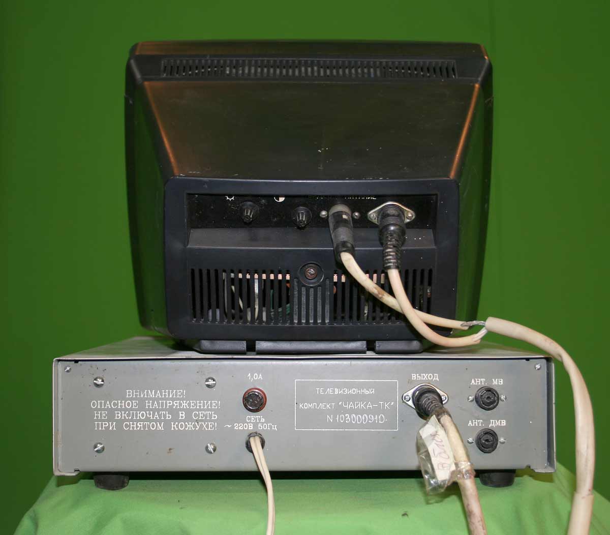 Телевизионный комплект *Чайка ТК/Д* с I-кв 1994 года выпускал АООТ *Нижегородский телевизионный завод имени Ленина*. Телевизионный комплект *Чайка ТК* - симбиоз монитора *Электроника* от ПК и блока приёмника телевизионного сигнала в МВ диапазоне волн, а комплект *Чайка ТКД* и в ДМВ. Блок приёмника имеет фиксированный выбор любого из заранее настроенных 8-ми телевизионных каналов. Монитор имеет диагональ экрана 31см. Чувствительность приёмника в МВ диапазоне 50 мкВ, в ДМВ 100 мкВ. Тюнер имеет номинальную выходную мощность канала звука 0,5 Вт. Диапазон воспроизводимых частот - 140..10000 Гц. Общая потребляемая мощность 40 Вт. Габариты монитора 350х300х245 мм, тюнера 350х310х70 мм. Масса тюнера 6, монитора 7 кг. Всего завод выпустил около шести тысяч комплектов *Чайка ТК/Д*.