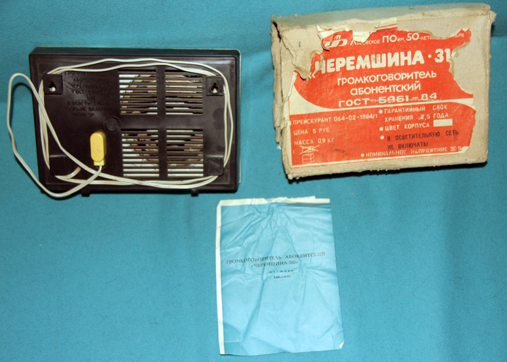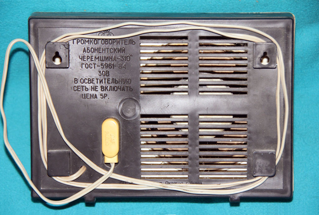 Абонентский громкоговоритель "Черемшина-310" предположительно с 1982 года выпускало Львовское ПО имени 50-летия Октября (ранее это был Львовский завод телеграфной аппаратуры). Абонентский громкоговоритель "Черемшина-310" предназначен для воспроизведения низкочастотной программы, передаваемой по местным проводным сетям с напряжением 30 В. В модели применён громкоговоритель 1ГД-30 и малогабаритный переходной трансформатор. Номинальная входная мощность - 0,15 Вт. Среднее звуковое давление - 0,25 Па. Диапазон рабочих звуковых частот 160...5000 Гц. КНИ - 8%. Входное сопротивление 3,6 кОм. Габариты громкоговорителя - 250х166х78 мм. Масса - 1,5 кг. Розничная цена - 5 рублей.