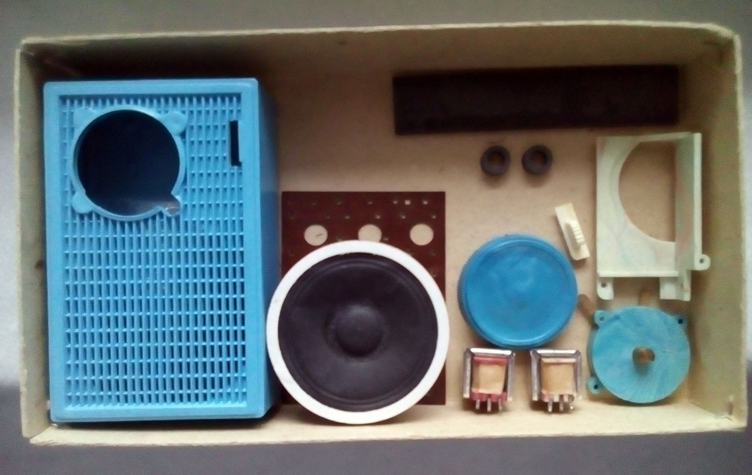 -Радиоконструктор *Радиоприёмники из набора деталей* с начала 1964 года выпускал Московский школьный завод *Чайка*. Радиоконструктор выпускался в виде набора с корпусом и минимумом радиодеталей и узлов, в виде набора с корпусом со средним набором радиодеталей и узлов, полностью комплектный набор, позволяющий без затрат собрать действующий радиоприёмник и в виде корпуса, с радиодеталями и узлами из которого можно было собрать одну из нескольких радиосхем радиоприёмника. Менялось оформление корпусов. Например такое как показано в заставке было и в других наборах. На сайте приведено несколько наборов завода *Чайка*, но описанный был одним из первых.