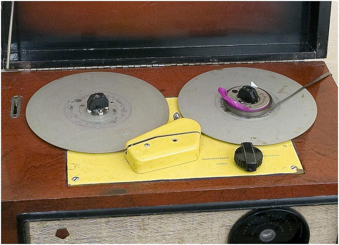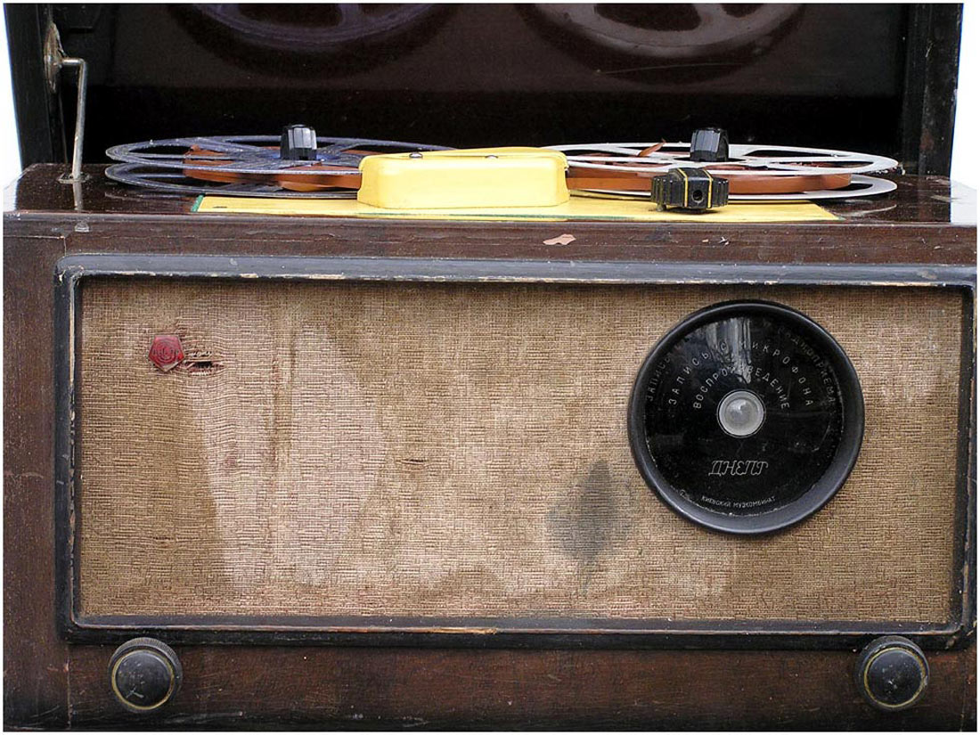 Сетевой катушечный ламповый магнитофон *Днепр-3* с 1952 года выпускал Киевский музкомбинат. Он предназначен для однодорожечной записи или воспроизведения звуковых фонограмм на ферромагнитной ленте. Запись производится с радиотрансляционной проводной сети, микрофона или звукоснимателя. В магнитофоне имеется ускоренная перемотка ленты в одном направлении. Скорость движения ленты 19,05 см/сек. Время записи, при ёмкости катушек 500 метров 44 минуты. Выходная номинальная мощность 3 Вт. Чувствительность с микрофона 2 мВ, 200 мВ от звукоснимателя и 30 В от радиолинии. Диапазон частот записи 100...5000 Гц. Относительный уровень шумов и помех -35 дБ. КНИ 5%. Питание аппарата осуществляется от электросети 110, 127 или 220 В. Размер аппарата 518х315х330 мм. Вес 28 кг. Магнитофон собран в декоративно оформленном под ценные породы деревянном ящике, с поднимающейся крышкой, под которой находится панель с ЛПМ. На панели расположены подкатушники, ручка управления родом работы, блок головок, закрытый съёмной крышкой. Блок состоит из универсальной и стирающей головок, прижимного ролика, направляющих стоек и ведущего вала. На передней панели находятся регулятор уровня записи, громкости и шкала с подсветкой, указывающая род работ. Громкоговоритель укреплен на передней панели слева и закрыт радиотканью. На задней стенке аппарата расположены разьёмы микрофона, звукоснимателя, радиолинии и головных телефонов, а так же колодка переключения напряжения сети и сетевой шнур. Футляр сзади закрывается картонной крышкой с отверстиями.